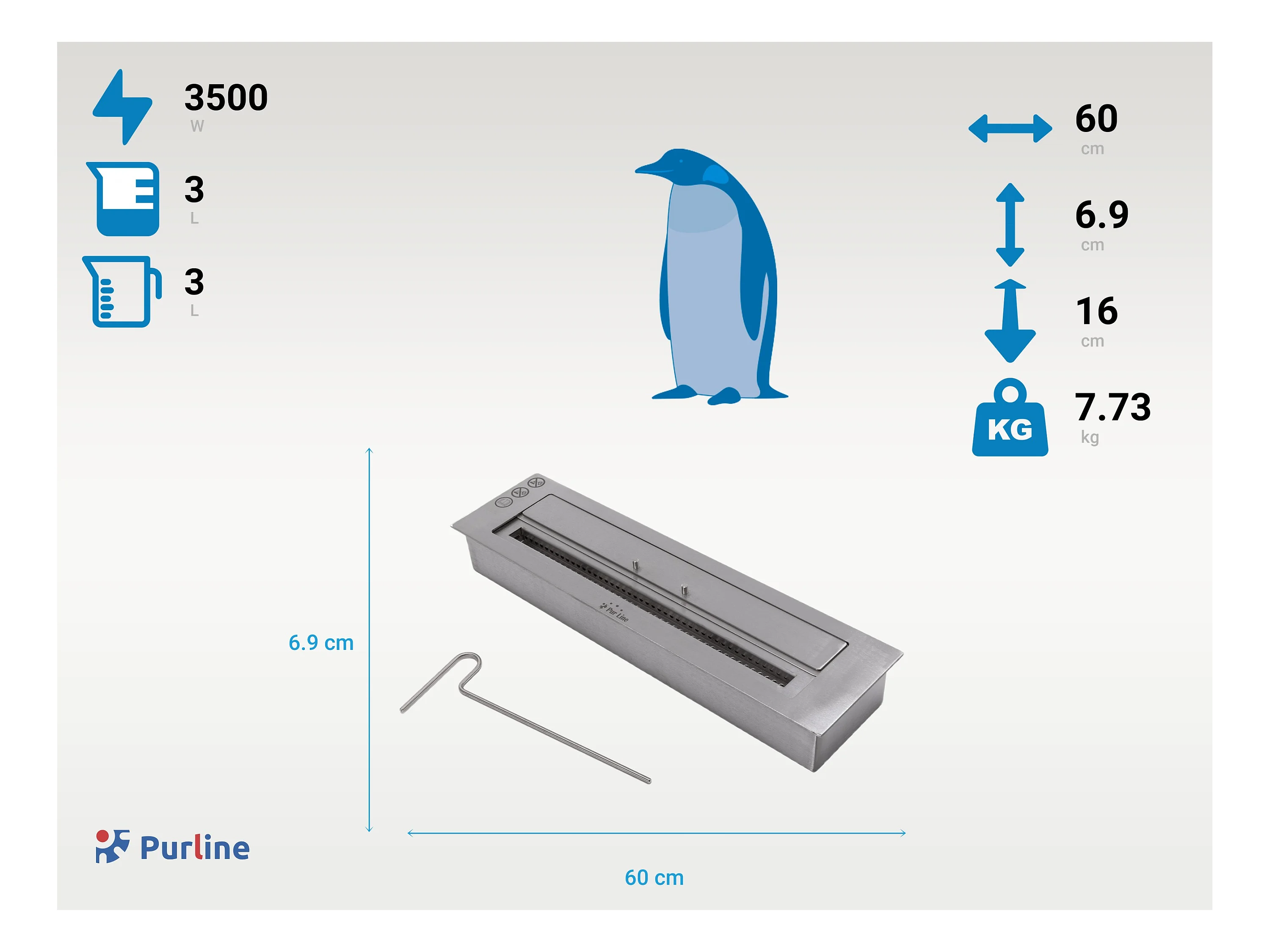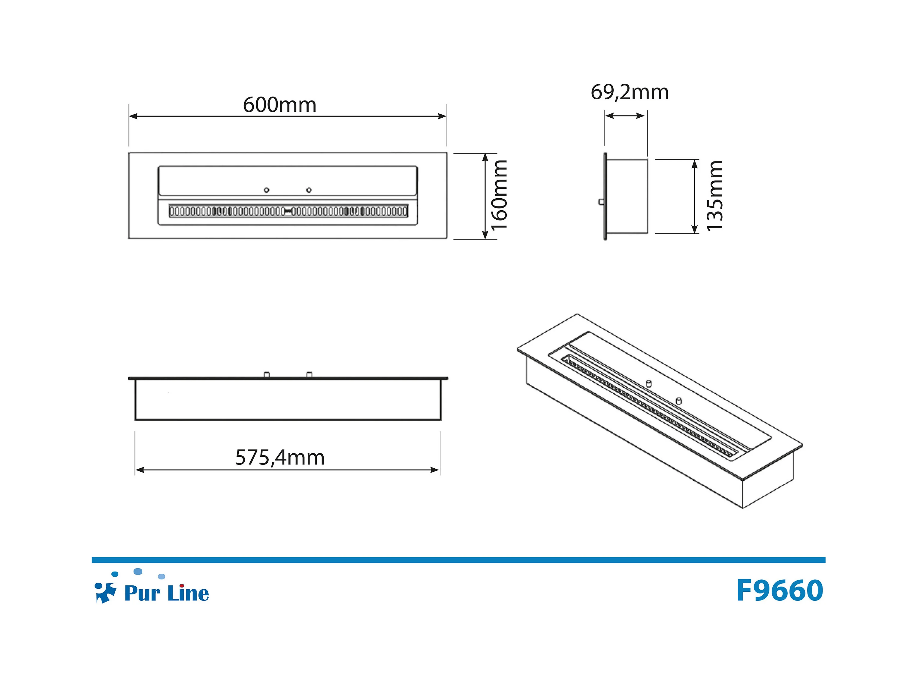 Bruciatore a bioetanolo per camino 3,5 L, in acciaio inox 45,7x18,7xH9,5 cm