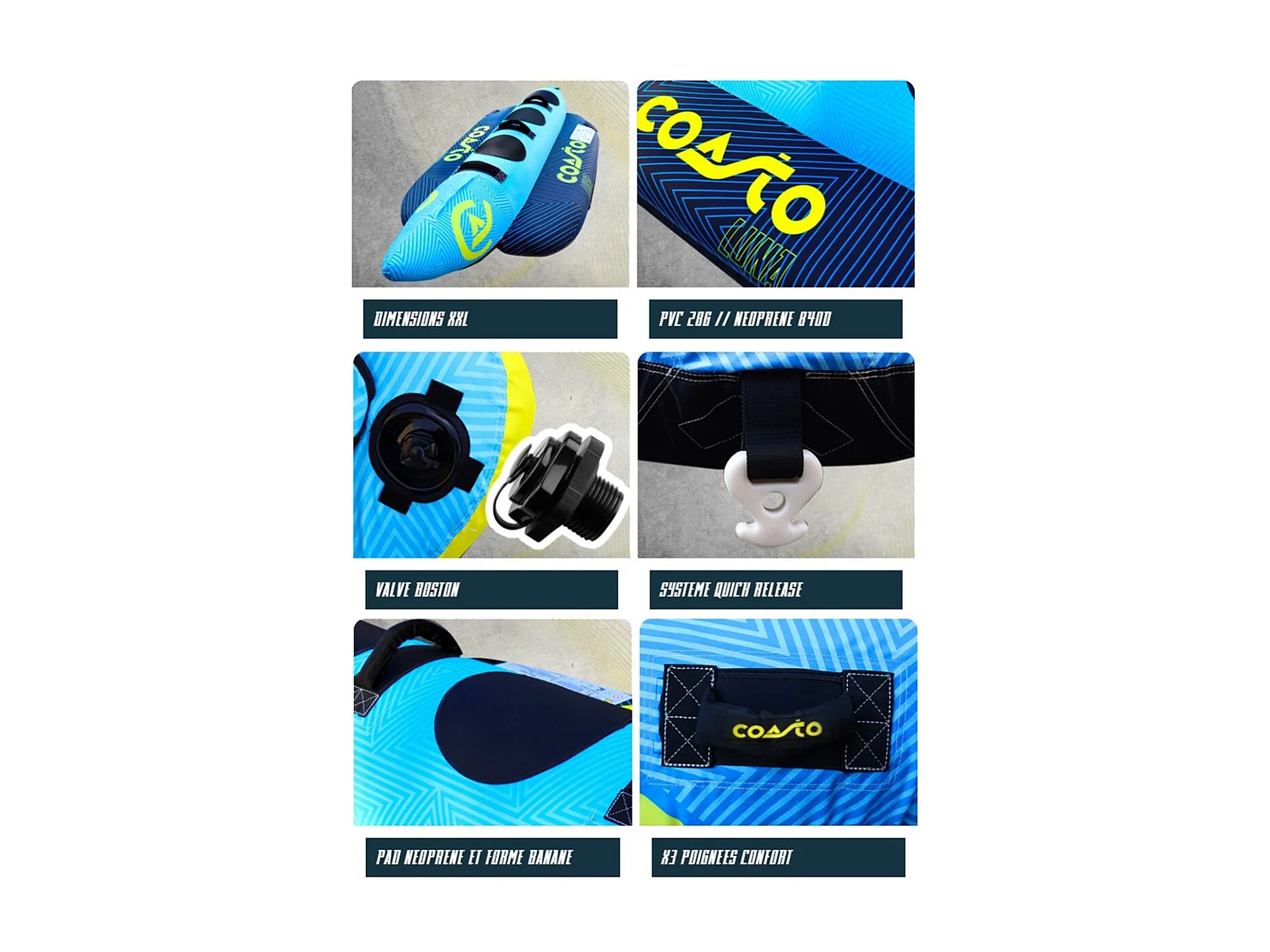 Boa trainata Coasto Luna - 300x100cm - 3 maniglie in neoprene - Carico massimo 230 kg - Nylon 840 D - PVC 28G - 3 posti a sedere
