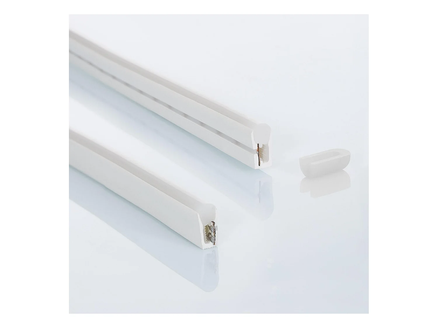 Bobina 50m Striscia LED Neon Regolabile 220V Bianco Freddo Semicircolare 180 7,5W/m IP67 Taglio 100cm 6000K Bianco Freddo