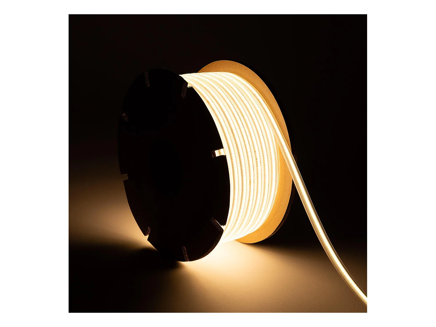 Bobina 50m Striscia LED Regolabile 220V SMD 120 LED/m 7.5W/m 750lm/m Larga 12mm IP65 Taglio 20/100cm 2200K Super Caldo