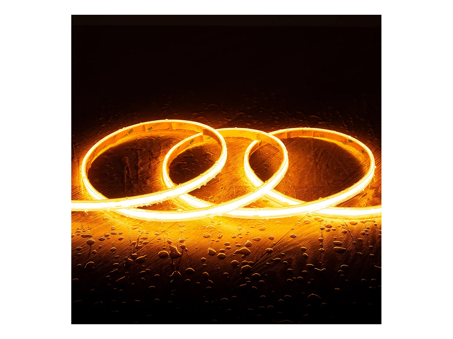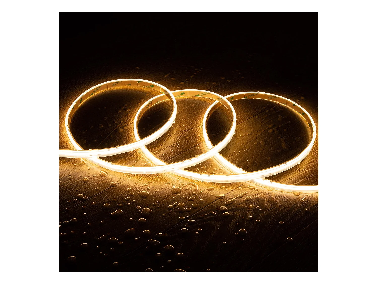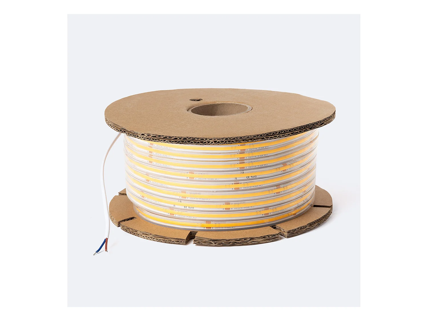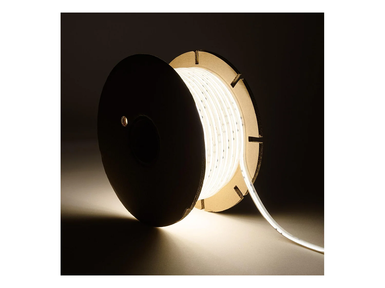 Bobina 50m Striscia LED Regolabile 220V COB Autorettificata 560LED/m 14W/m 1250lm SILICONE FLEX Larga 10mm IP65 Taglio 10cm 2200K Super Caldo