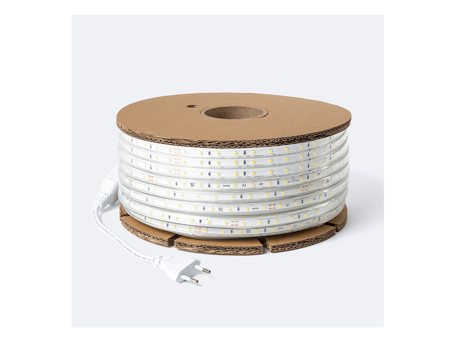 Bobina 50m Striscia LED Regolabile 220V SMD Autorettificata 120 LED/m 10W/m 1000lm/m Larga 12mm IP65 Taglio 10cm 6000K Bianco Freddo