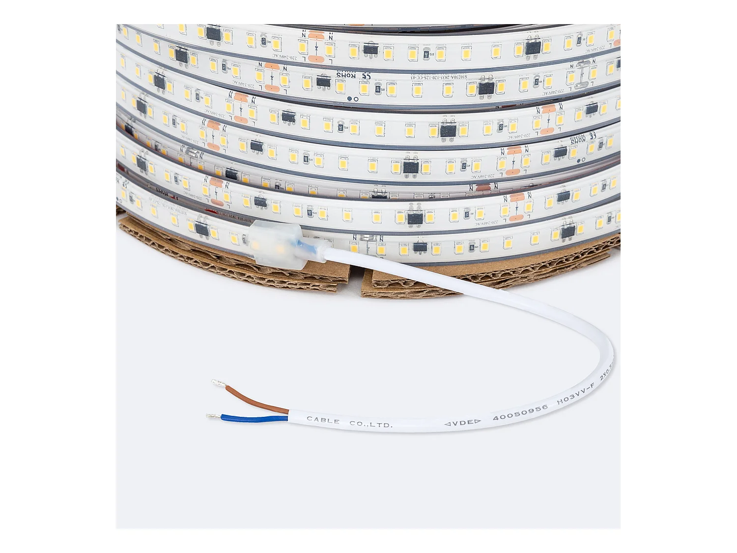Bobina 50m Striscia LED Regolabile 220V SMD Autorettificata 120 LED/m 10W/m 1000lm/m Larga 12mm IP65 Taglio 10cm 6000K Bianco Freddo