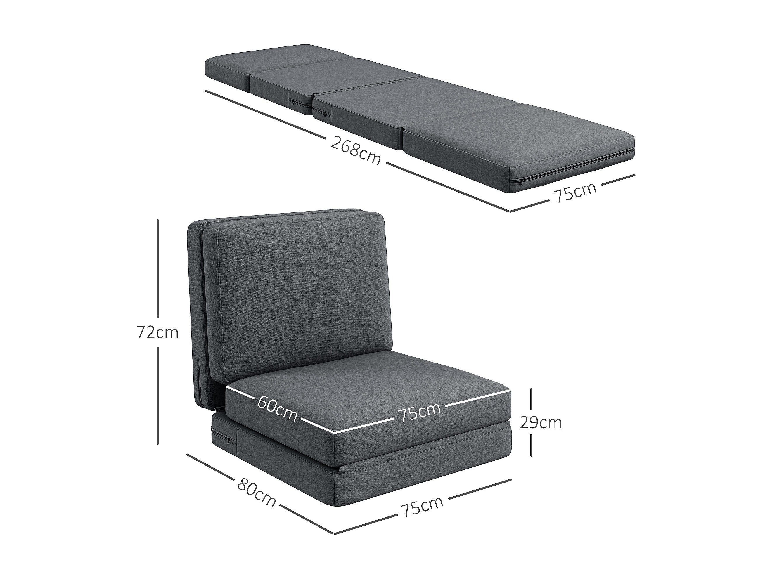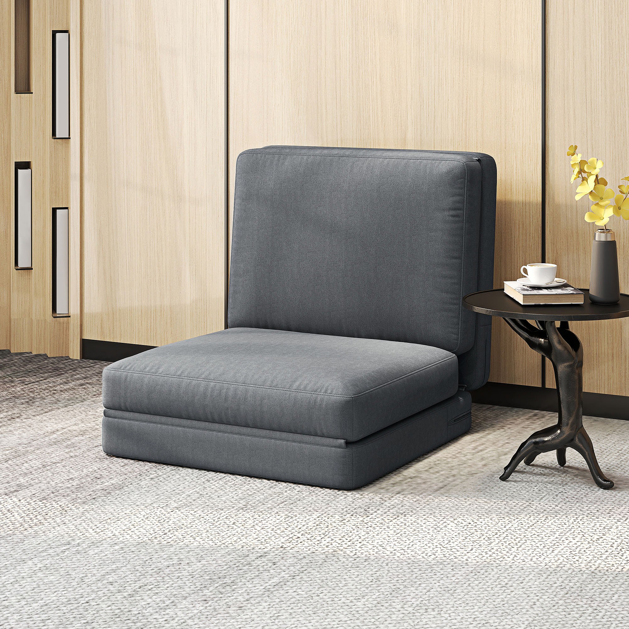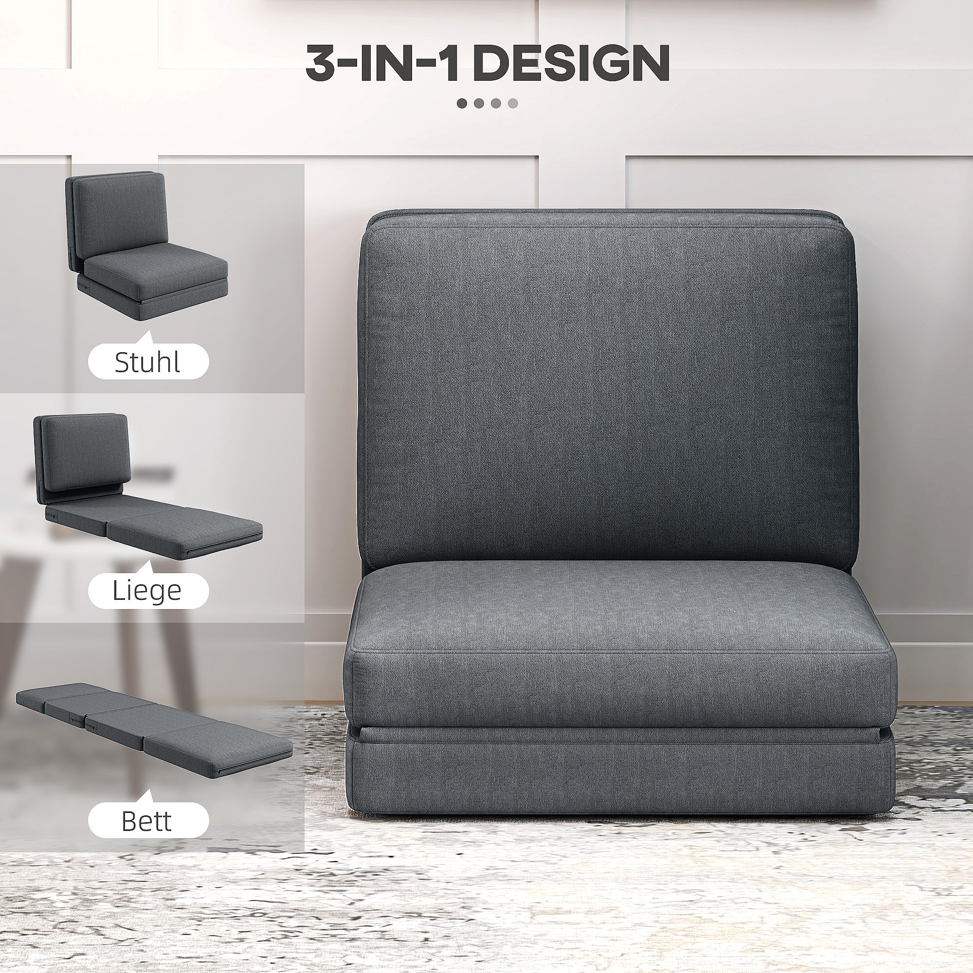 Fauteuil convertibile 3-en-1 tissu lin avec fonction lit salon gris 78x72x83cm