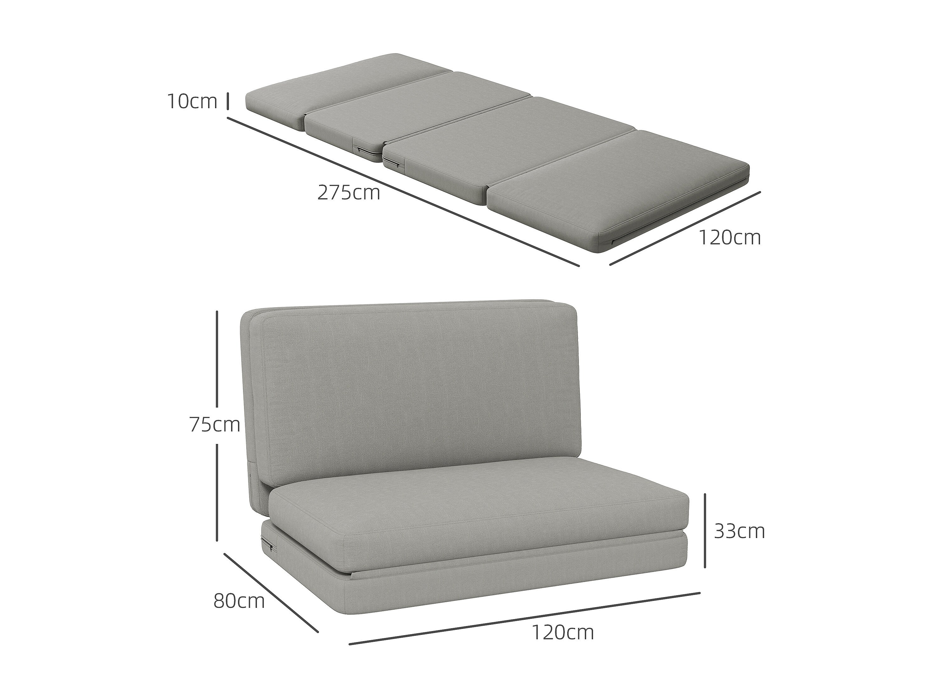 Fauteuil convertibile 3-en-1 tissu lin avec fonction lit salon gris 78x72x83cm