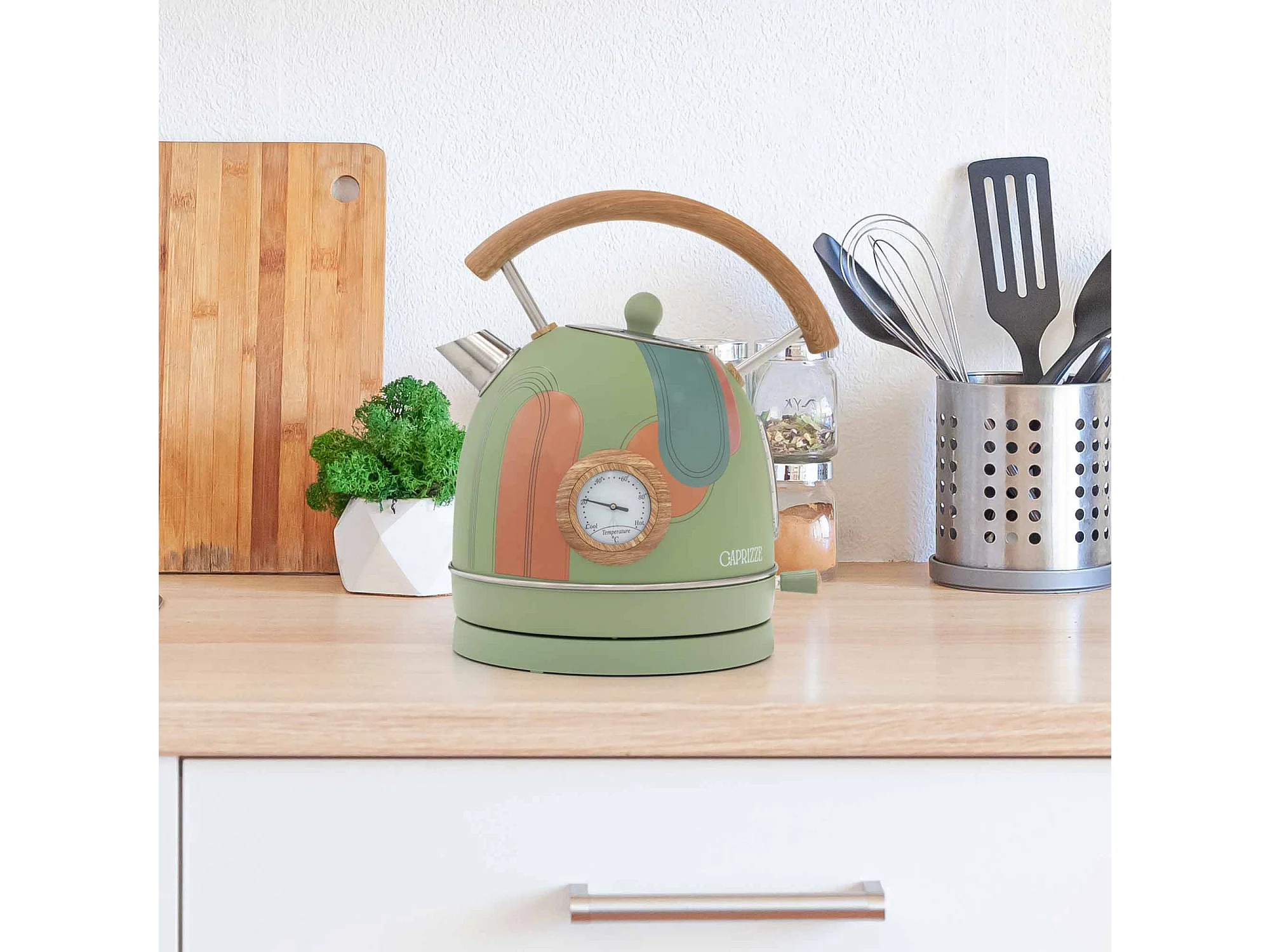 Bollitore d'acqua Caprizze Nara 2200 W in acciaio inox termometro integrato capacitá 1.8 L decorazione floreale e effetto legno