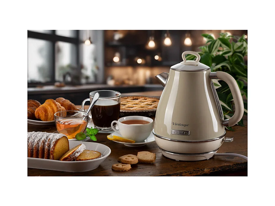 Bollitore Elettrico 1,7L - Design Vintage, Autospegnimento, Acciaio Inox - Beige