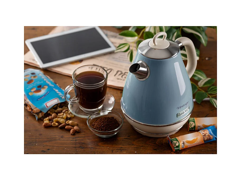 Bollitore Elettrico 1,7L - Design Vintage, Autospegnimento, Acciaio Inox - Celeste