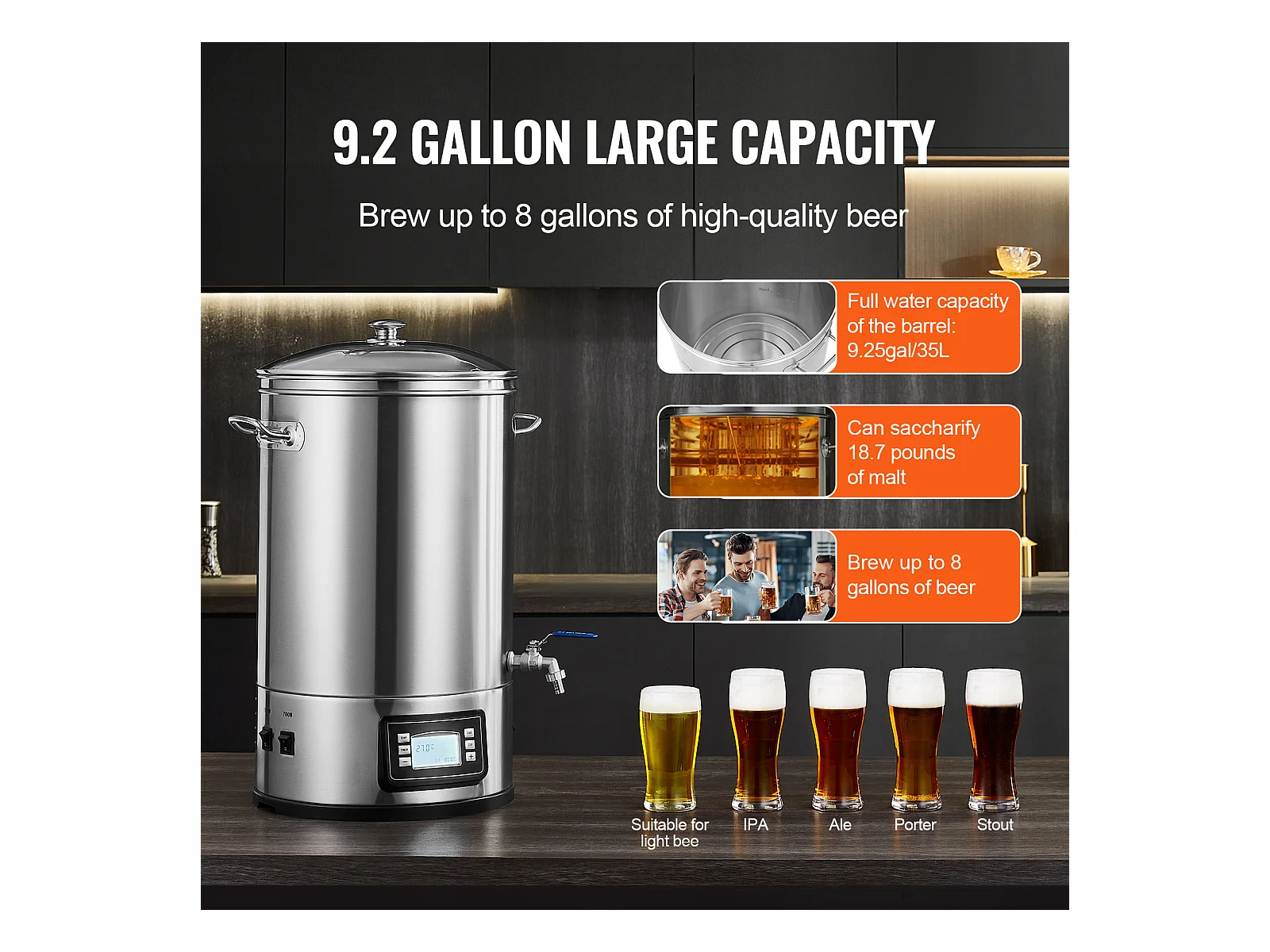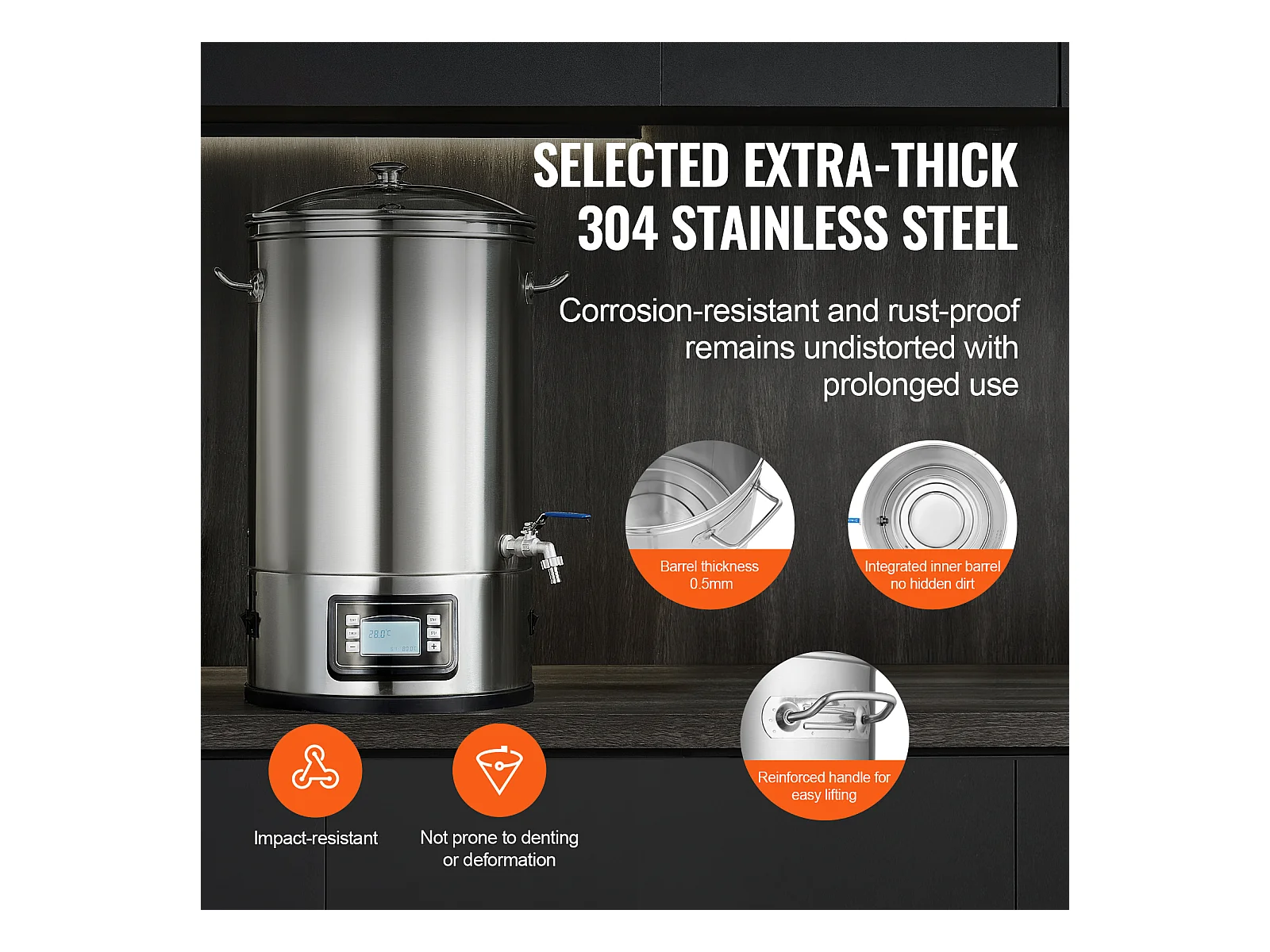 Bollitore per Birra, SucceBuy Kit per la Preparazione Casalinga di Birra in Acciaio Inossidabile, Pentola da 30 Litri con Accessori