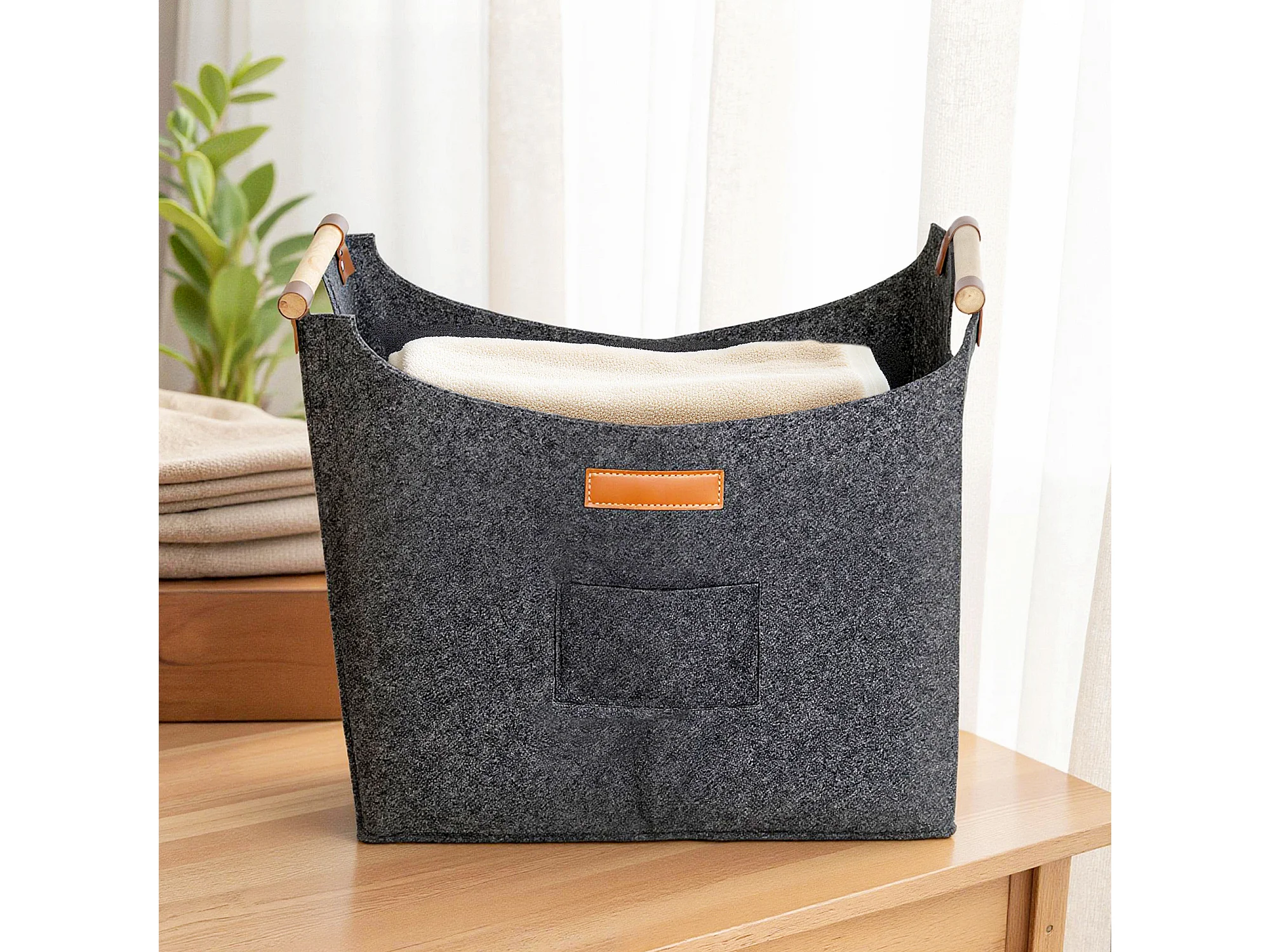 Borsa portalegna con manici da interni in feltro e legno grigio