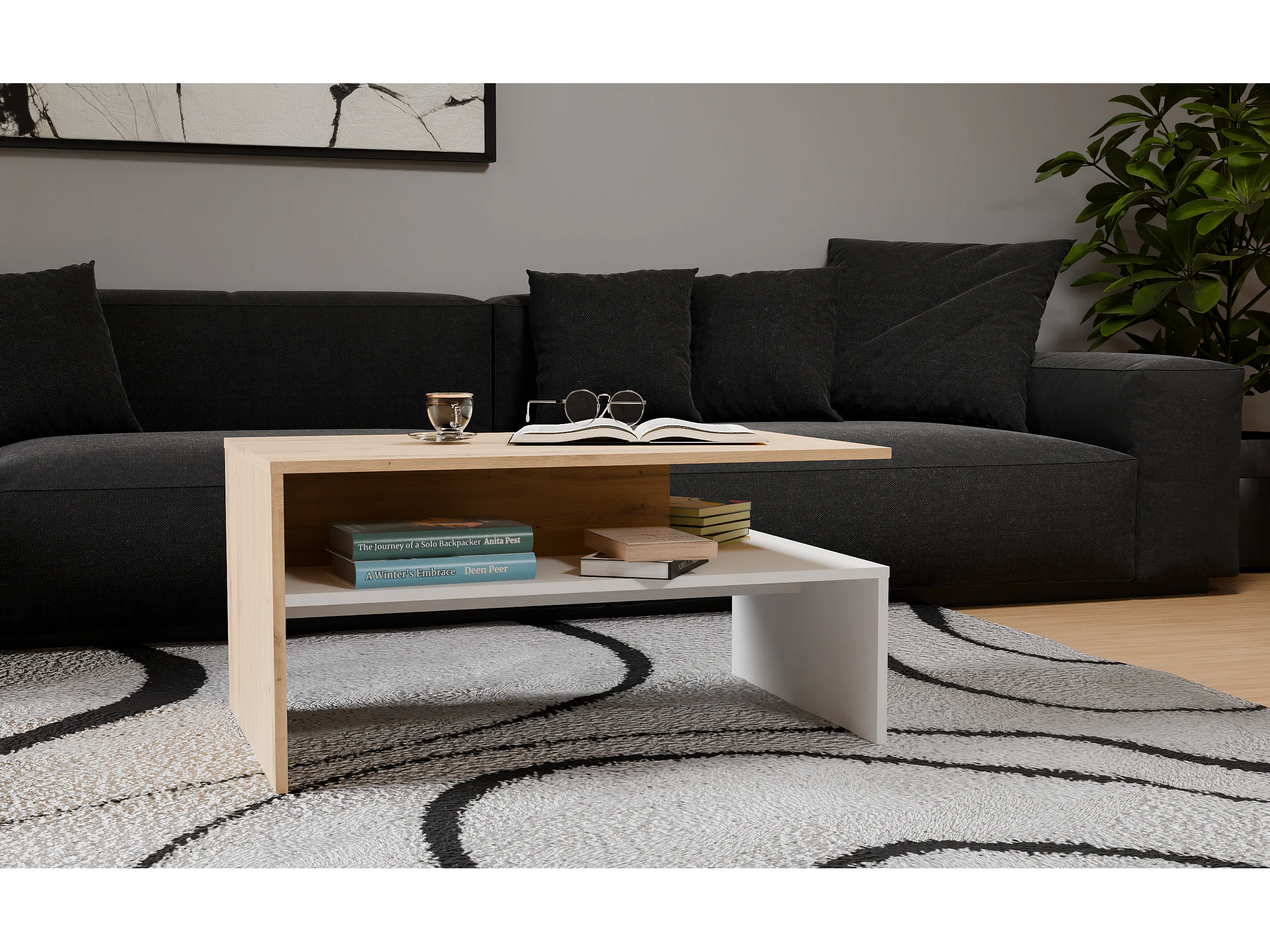 Tavolino da salotto moderno 100x45cm bianco e rovere TLK13