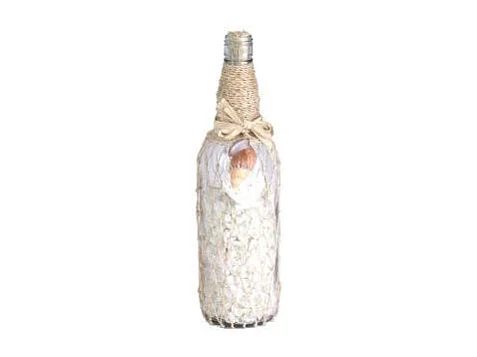 Bottiglia mare piena conchiglie con rete cm ø8h35 con conchiglie
