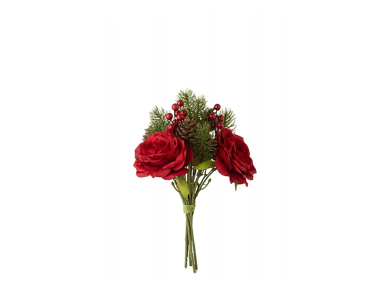 Bouquet di rose e bacche artificiali in plastica verde 19x15x32 cm