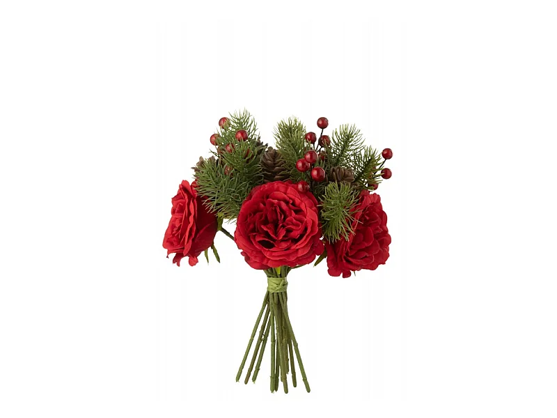 Bouquet di rose e bacche artificiali in plastica verde 19x15x32 cm