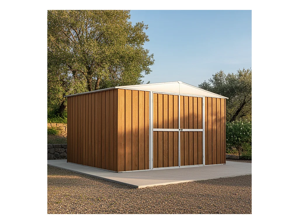 Box deposito in lamiera garage acciaio 403x269cm x h 215cm - 149kg - 10,84mq - FINITURA LEGNO