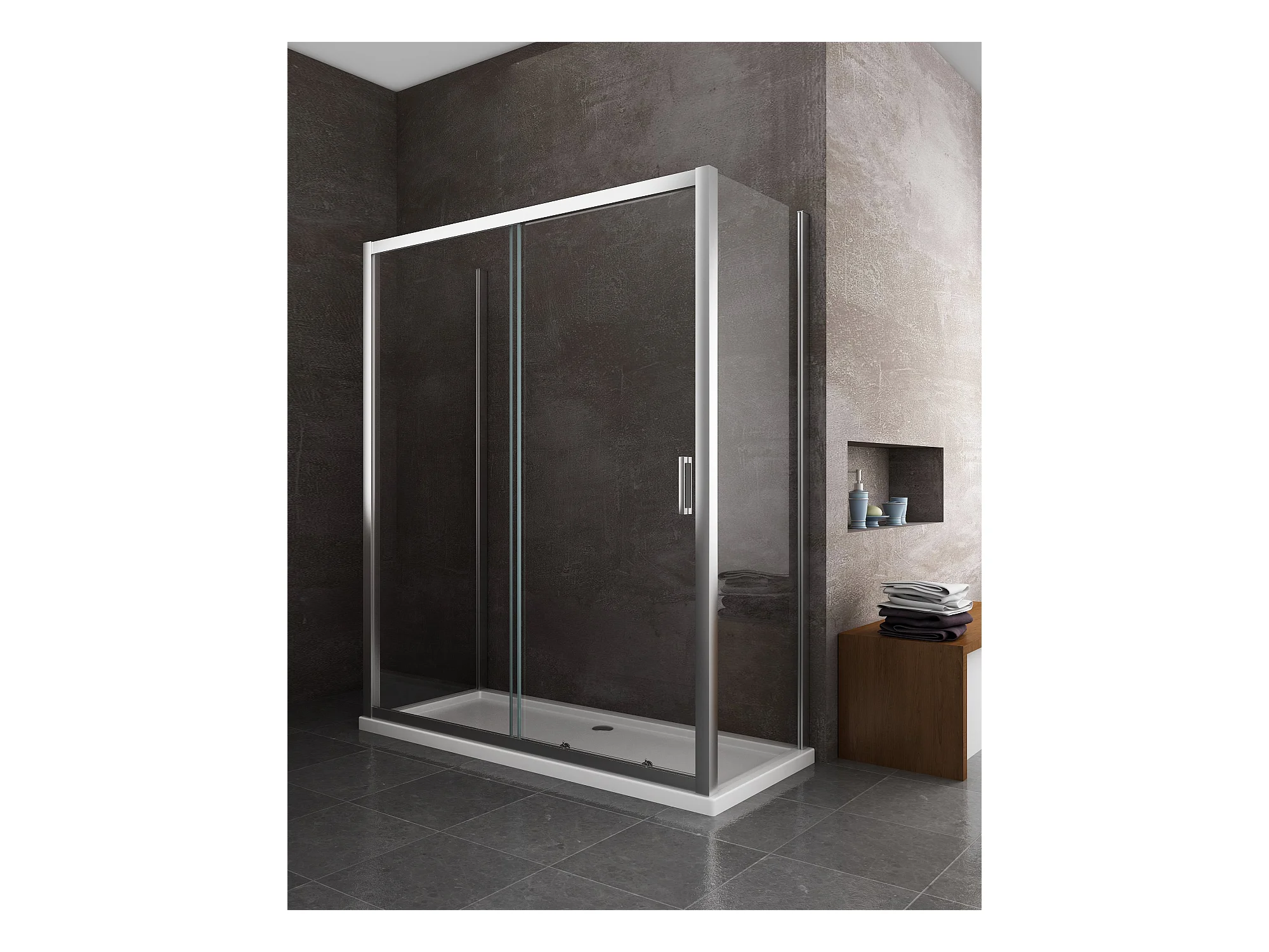 Box Cabina Doccia 3 Lati Vetro Fisso Laterale + Due Lati Scorrevoli Vetro 6 Mm H 190 Cm 75x90x75