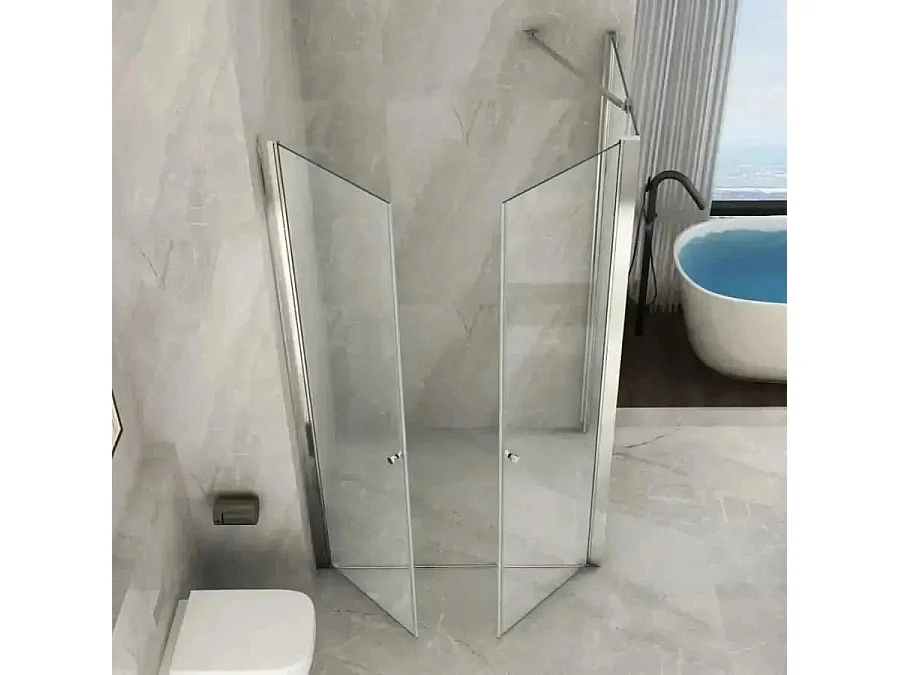 Box Doccia 8mm Porta Saloon Apertura Interna Esterna A Due Ante - Nova 2.0 - 70x60 - Ingresso Lato Corto