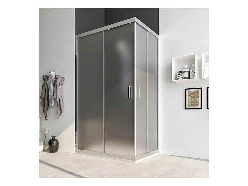 Box Doccia Angolare 80x80 Con Due Ante Scorrevoli Satinato Da 6mm - Acacia