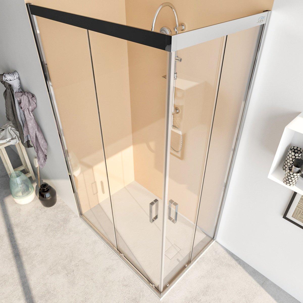 Box Doccia Angolare 80x100 Con Due Ante Scorrevoli Trasparente Da 6mm - Acacia