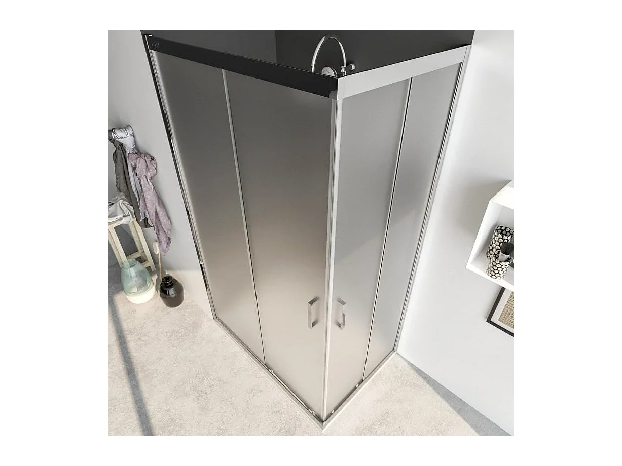 Box Doccia Angolare 90x110 Con Due Ante Scorrevoli Satinato Da 6mm - Acacia