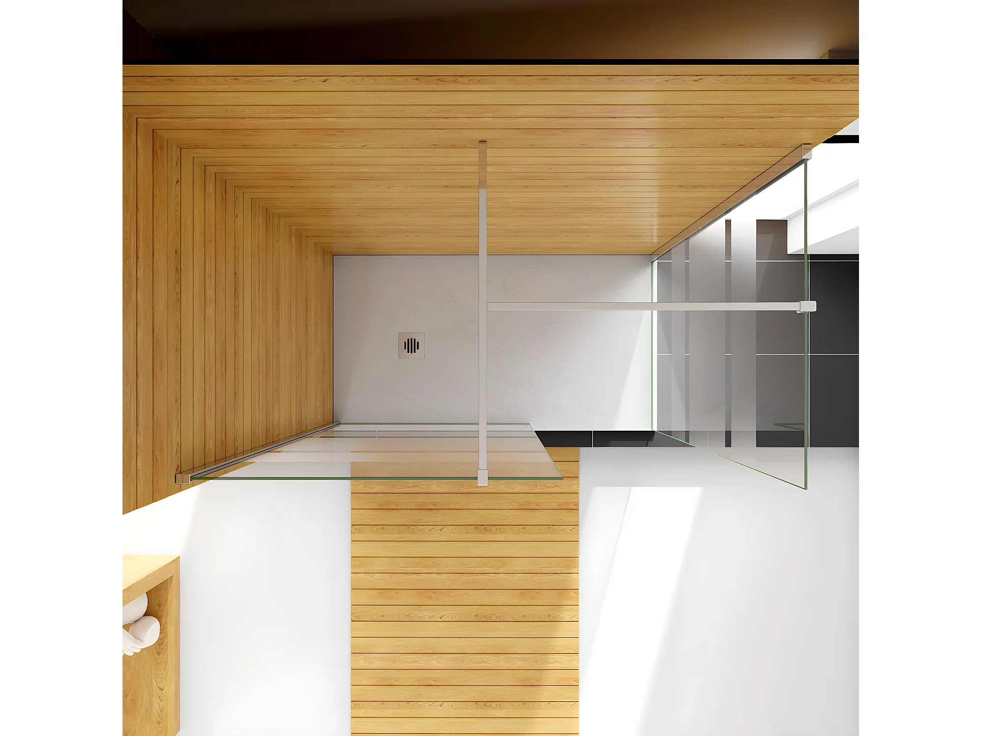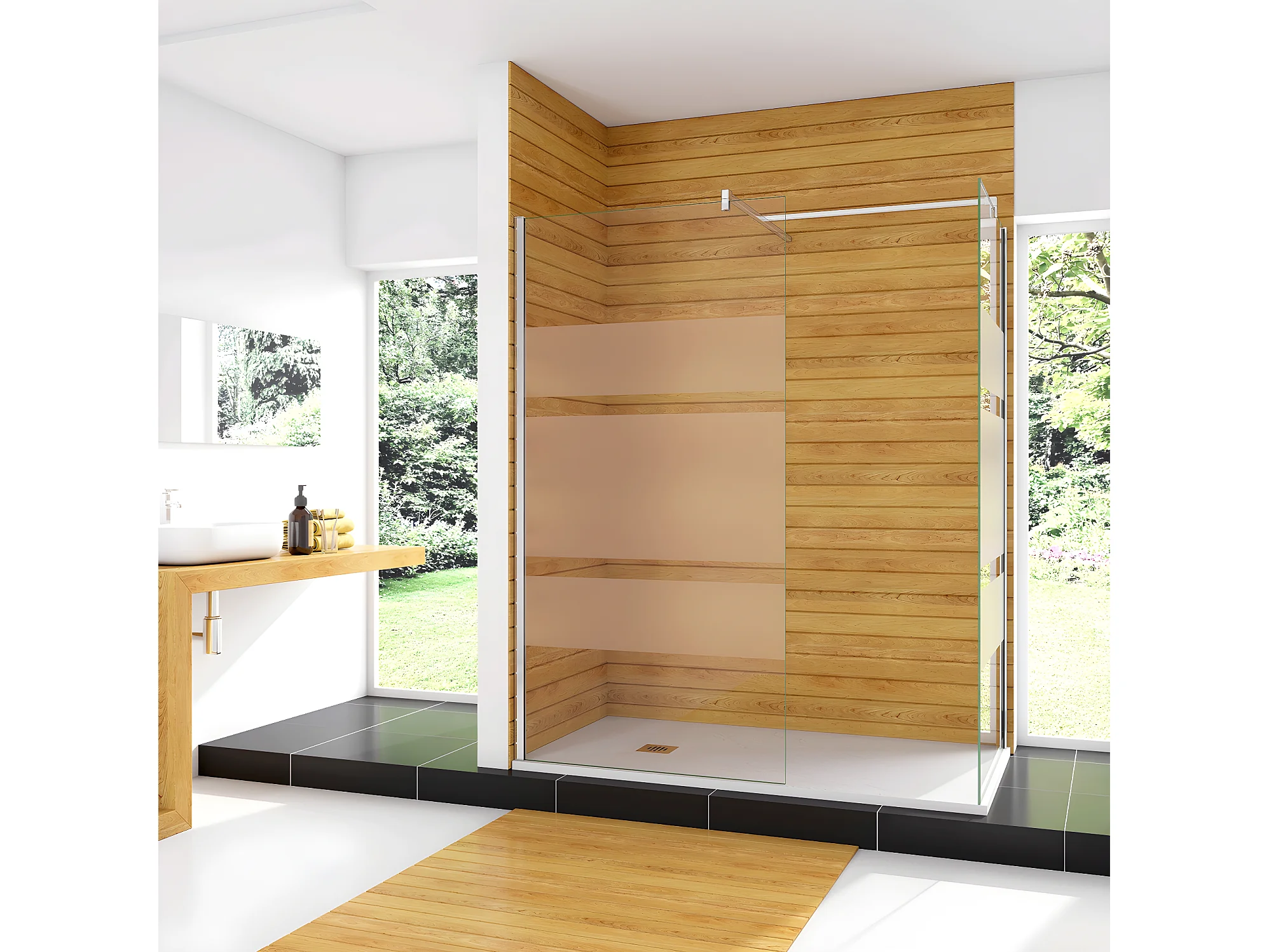 Box Doccia Angolare da Doppio Walk In (80+70)x190cm in Vetro Temperato 6mm Anticalcare Multi Fasce Satinate 2 Barre Stabilizzatrici da 140cm Cromato