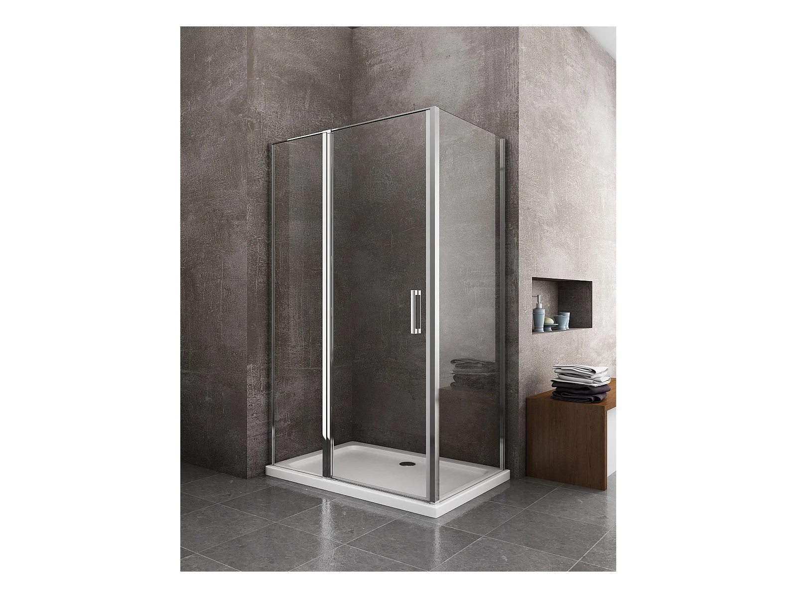 Box doccia angolare parete fissa e porta battente e fisso in linea vetro 6 mm reversibile Misura Fisso 86,5-89 porta 117-120 (35+65)