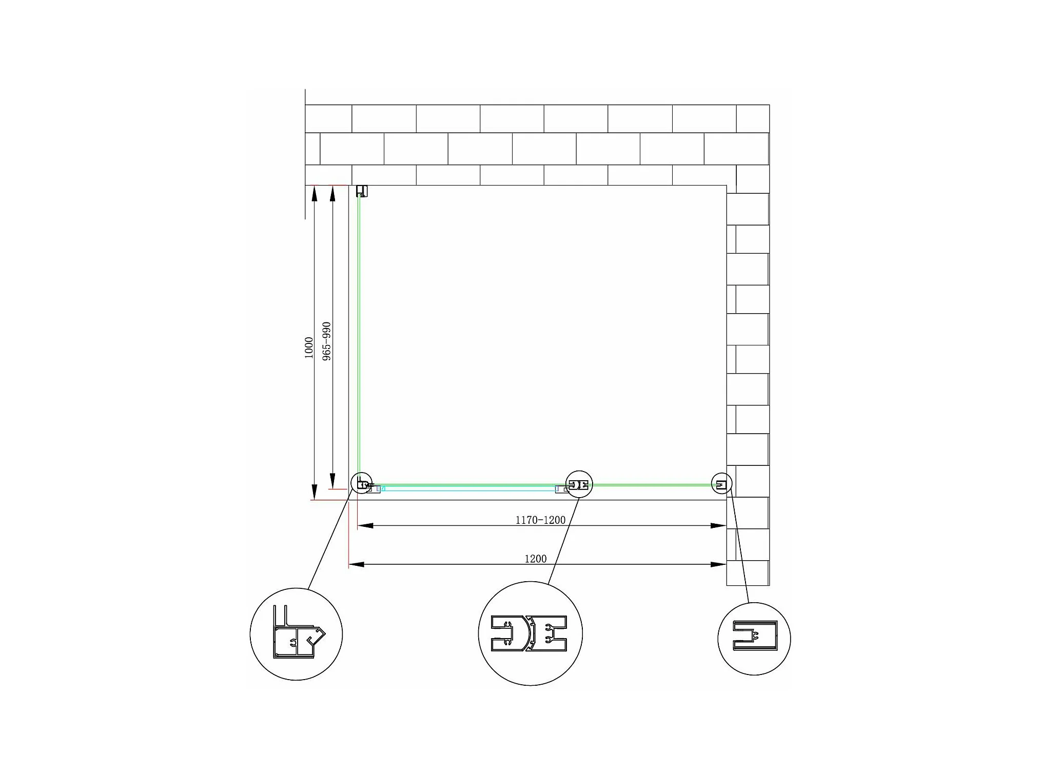 Box doccia angolare parete fissa e porta battente e fisso in linea vetro 6 mm reversibile Misura Fisso 66,5-69 porta 117-120 (35+65)