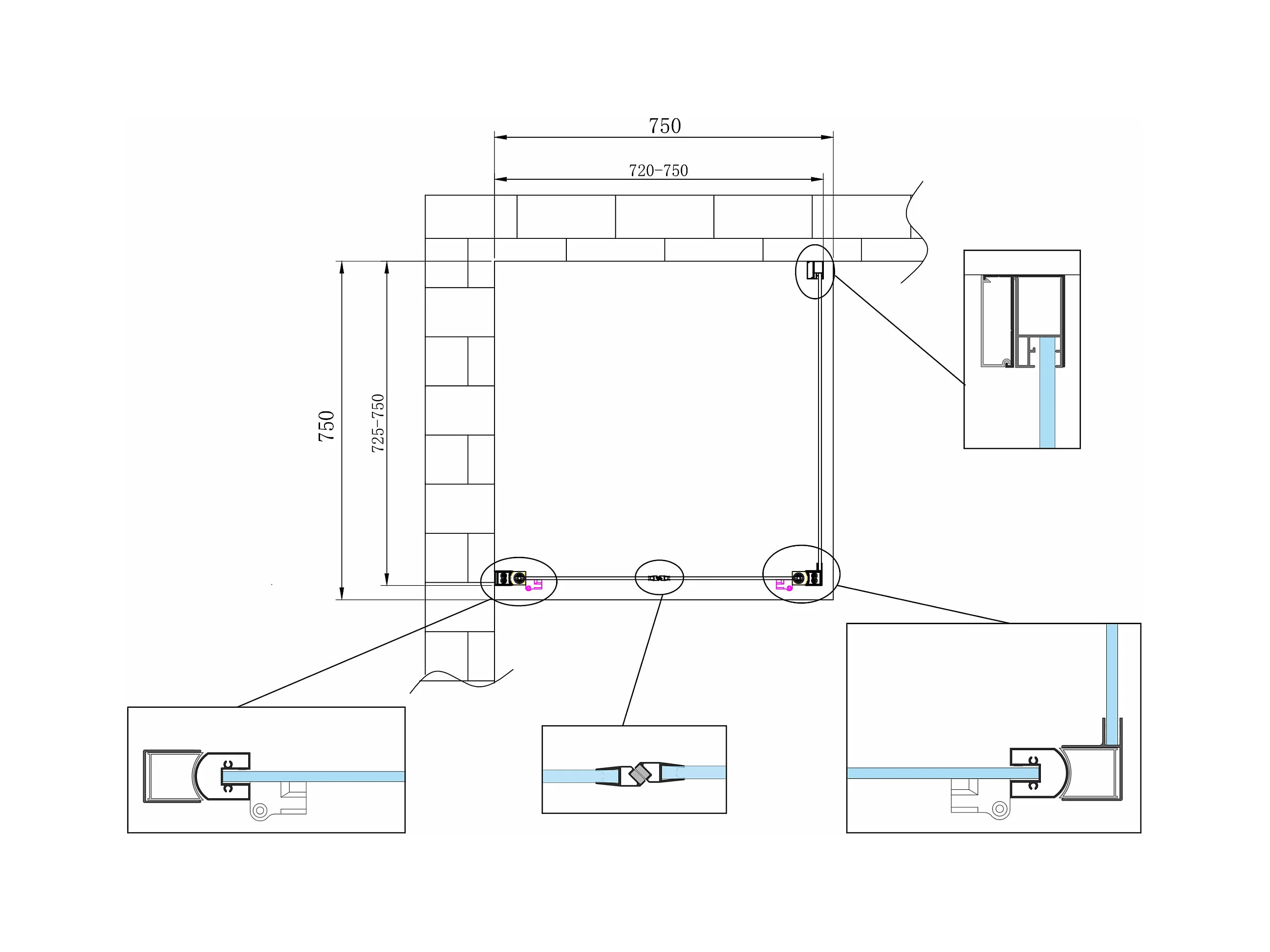 Box doccia angolare parete fissa e porta battente tipo saloon vetro 6 mm reversibile MISURA 72,5-75 ANTA FISSA + PORTE 72-75