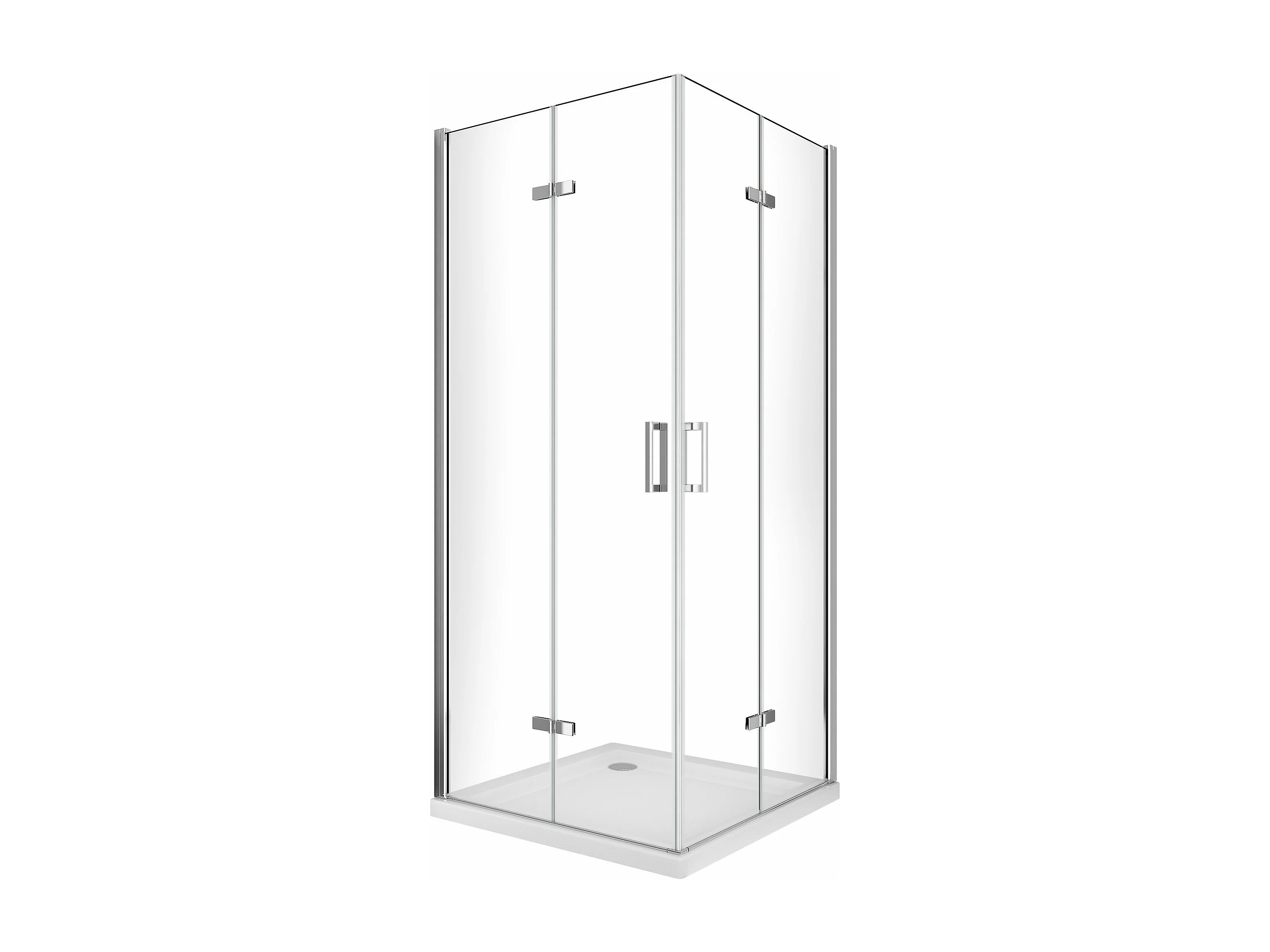 Box doccia angolare pieghevole a libro con chiusura a pacchetto H 190 cromo anticalcare trasparente con misure 75 (72,5-74) x 75 (72,5-74)