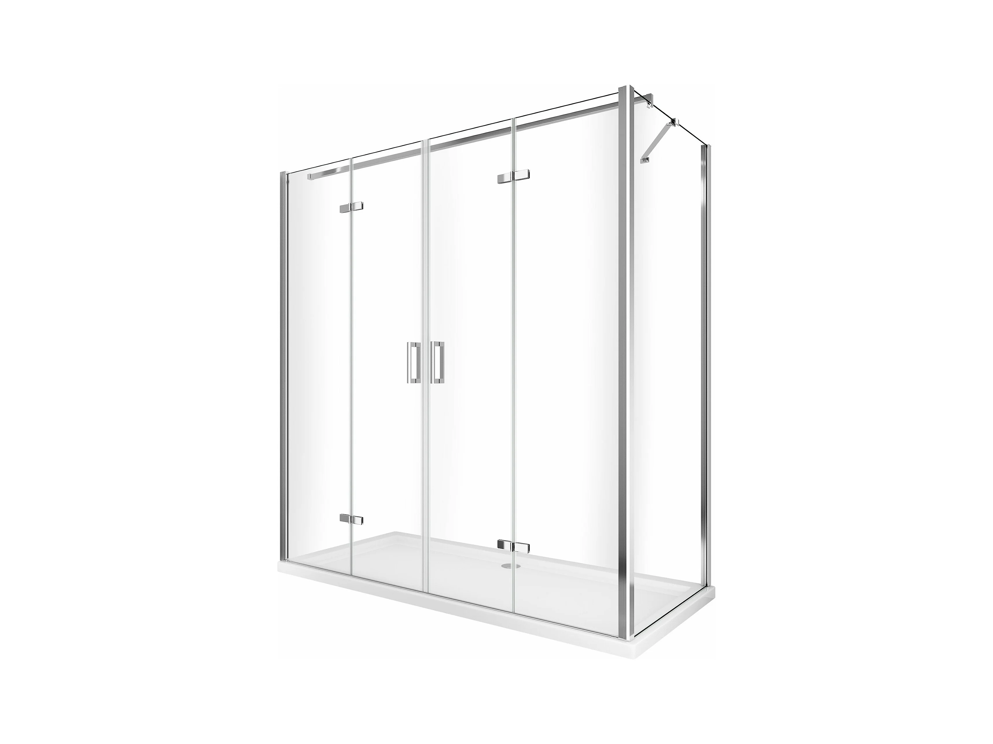 Box doccia angolare pieghevole a libro con chiusura a pacchetto H 190 cromo anticalcare trasparente con misure 70 (67,5-69) x 90 (87,5-89)