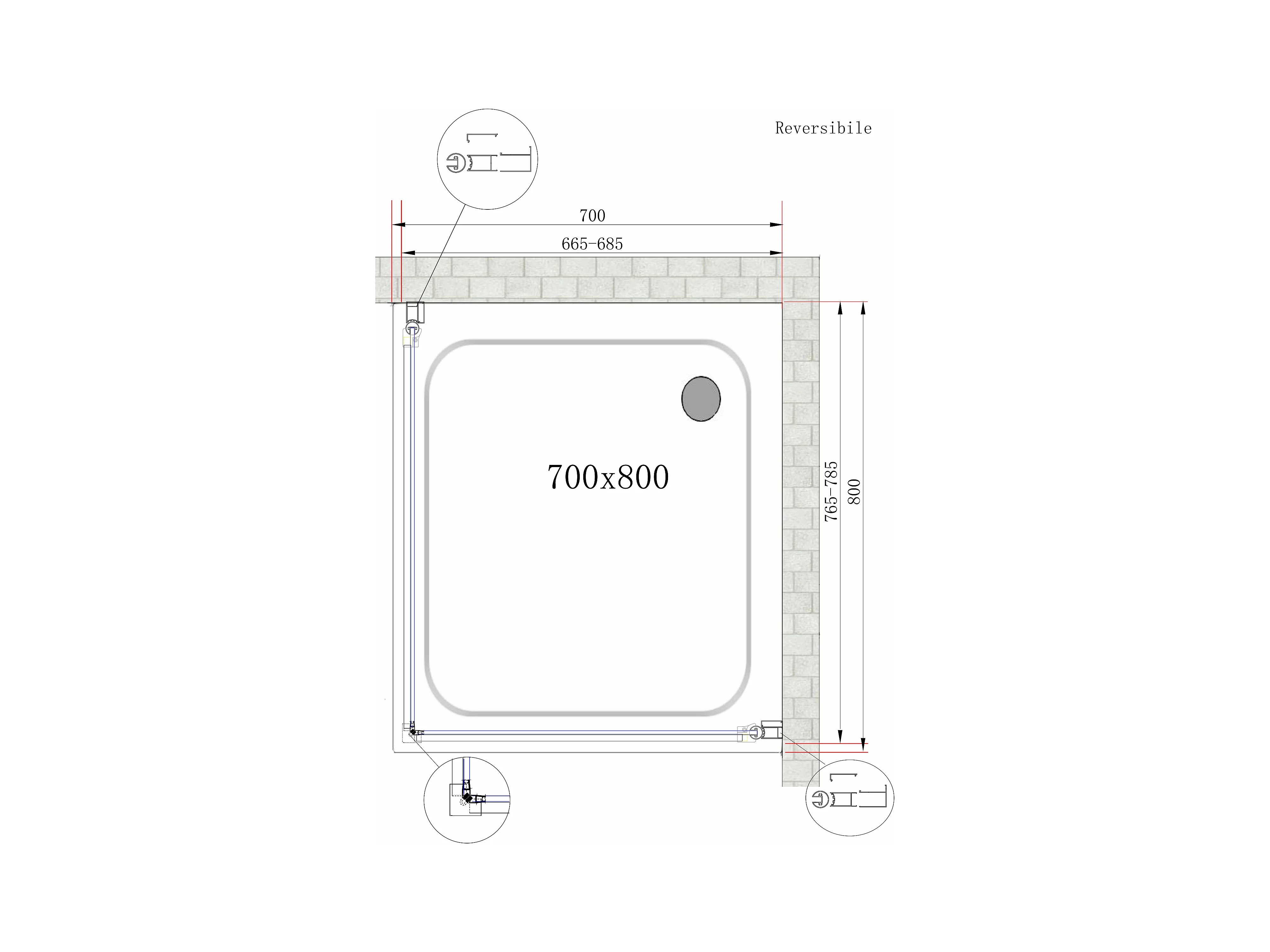 Box Doccia Doppio Battente Angolare Vetro Temperato 8 mm Easy-clean Reversibile 66,5-68,5 x 76,5-78,5 H 200 cm