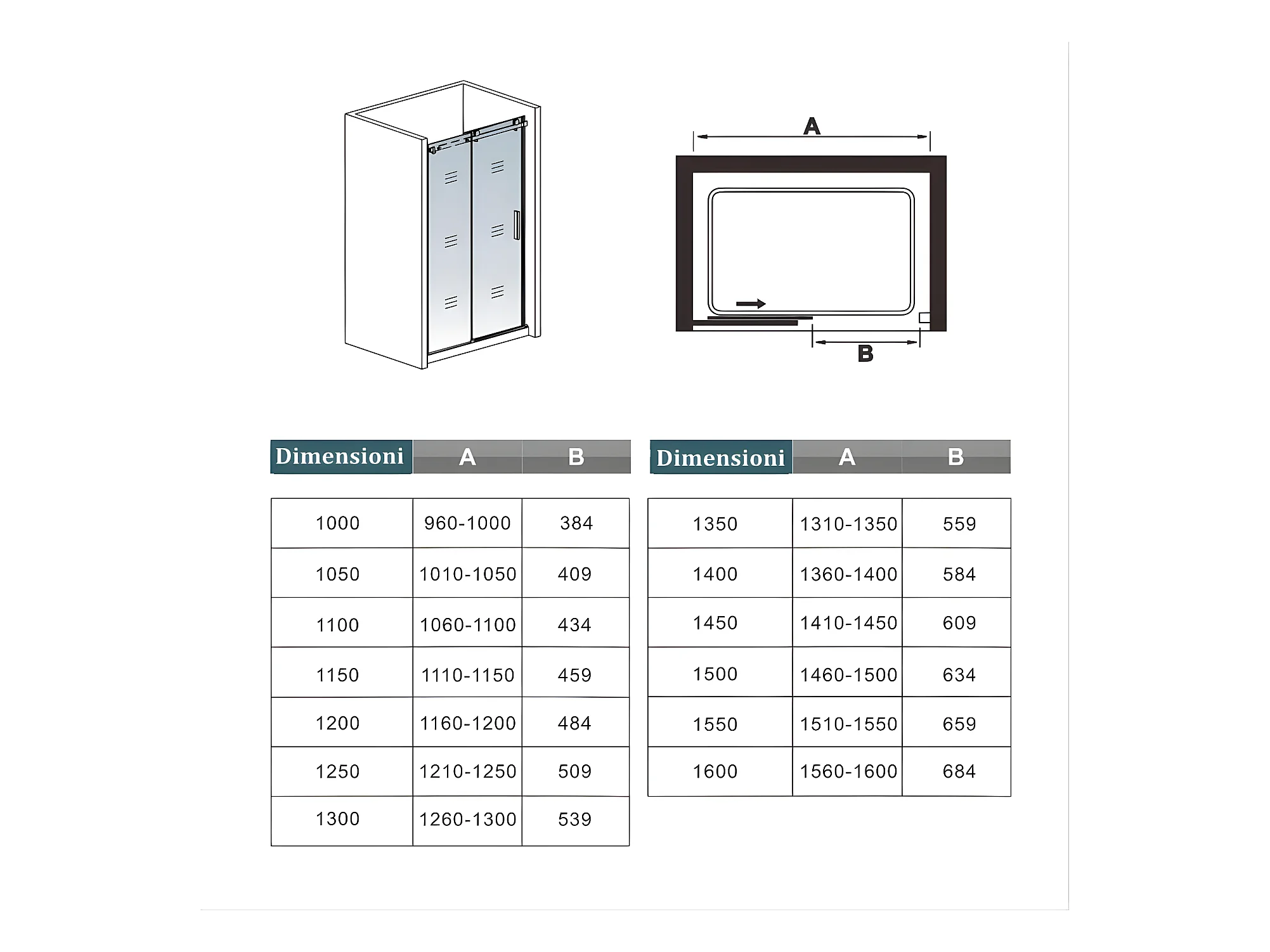 Box Doccia Per Nicchia Porta Scorrevole Ingresso Destro Vetro 8 mm Temperato Satinato Opaco Anticalcare 100x195 cm