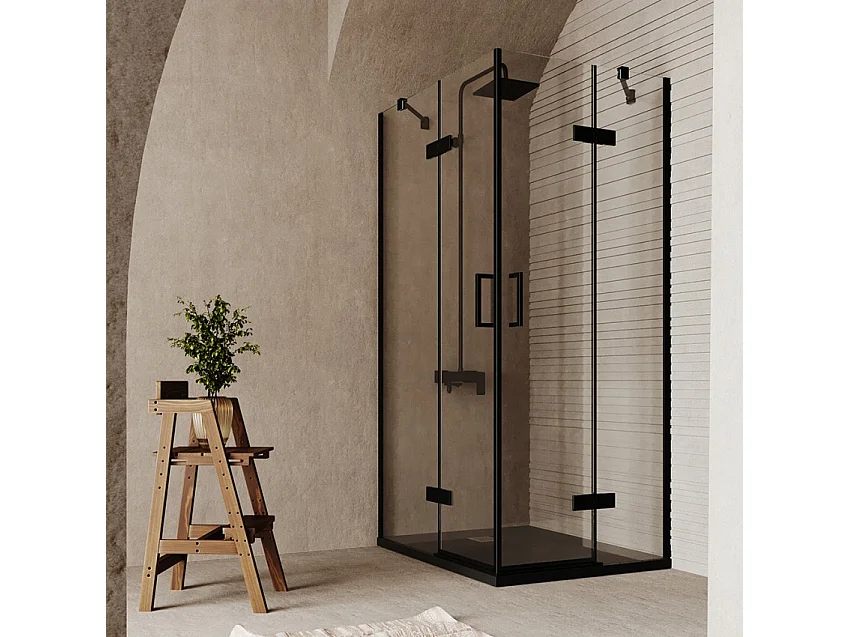 Box doccia quadrato angolare 90x90 nero vetro trasparente 6mm Lion