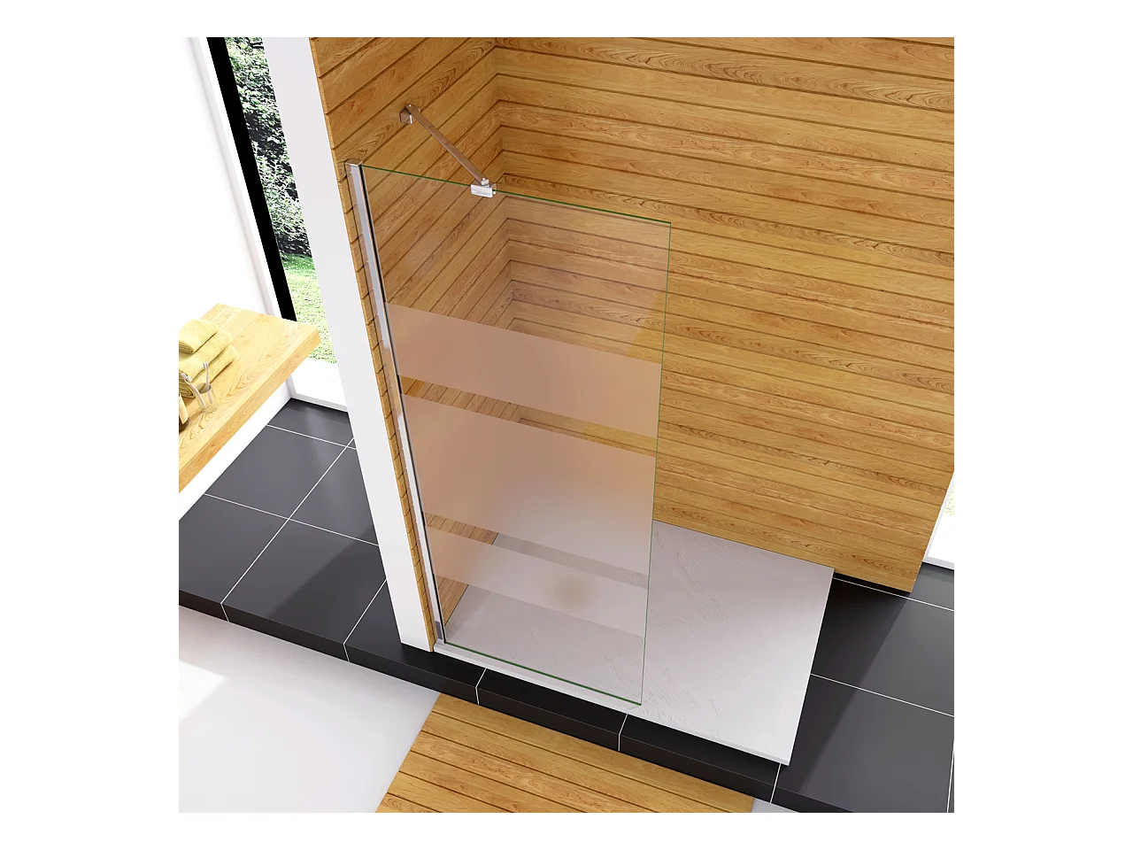 100x190cm Box Doccia Walk In Parete Fissa in Vetro Temperato 6 mm Anticalcare Multi Fasce Satinate Opache con Barra Stabilizzatrice 90cm Cromo Lucido