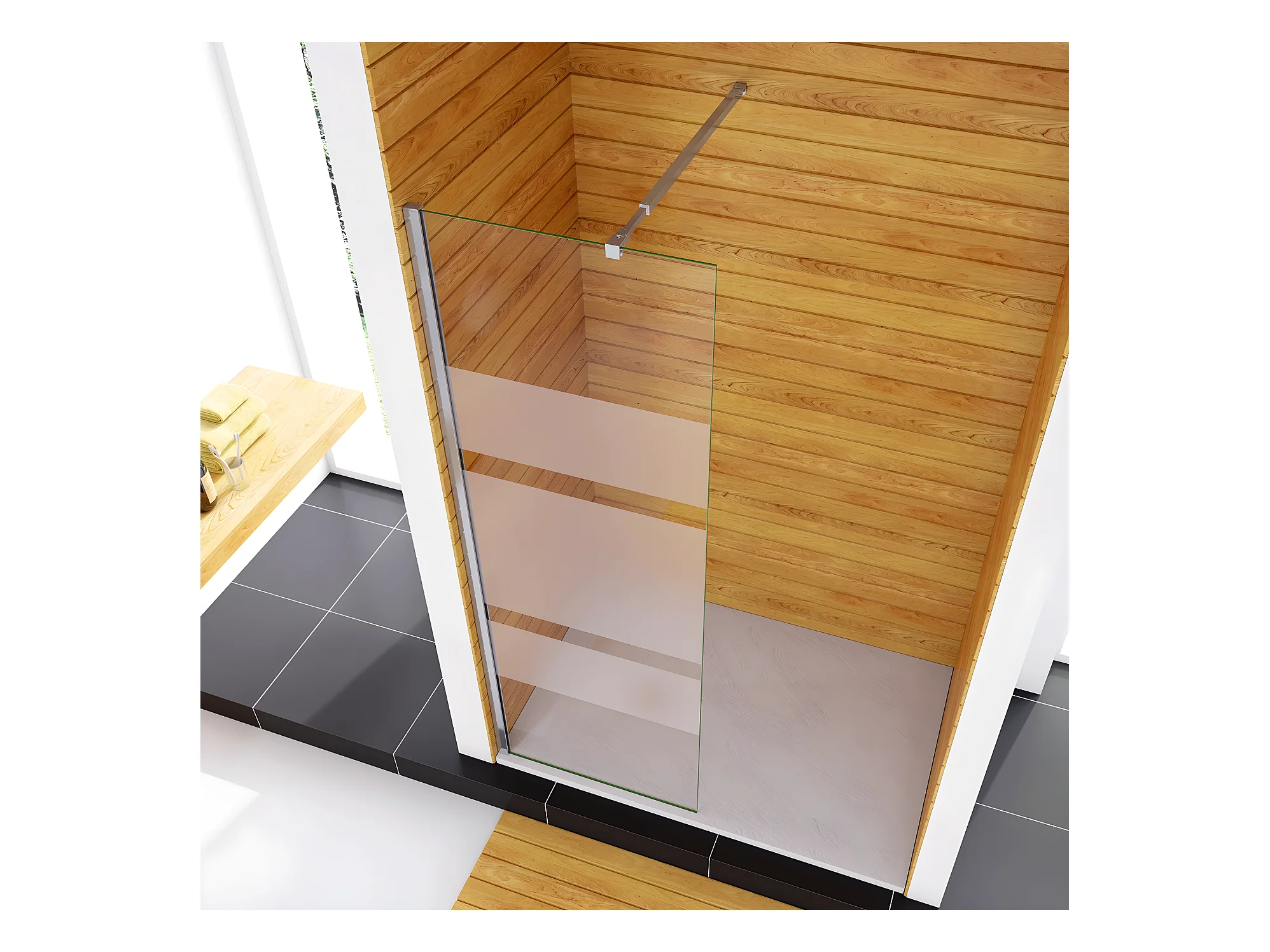 120x190cm Box Doccia Walk In Parete Fissa in Vetro Temperato 6 mm Anticalcare Multi Fasce Satinate Opache con Barra Stabilizzatrice 140cm Cromo Lucido