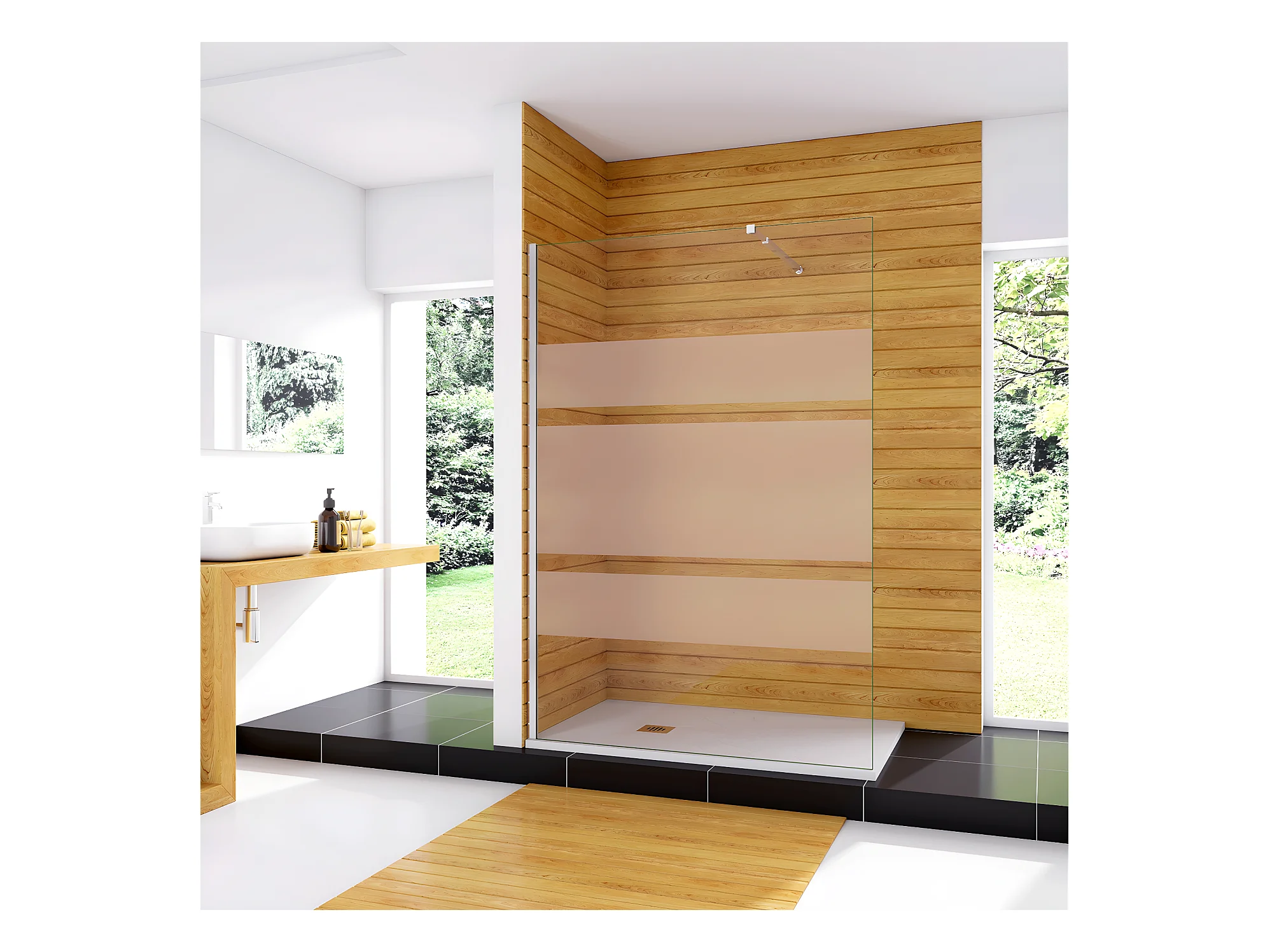120x190cm Box Doccia Walk In Parete Fissa in Vetro Temperato 6 mm Anticalcare Multi Fasce Satinate Opache con Barra Stabilizzatrice 90cm Cromo Lucido