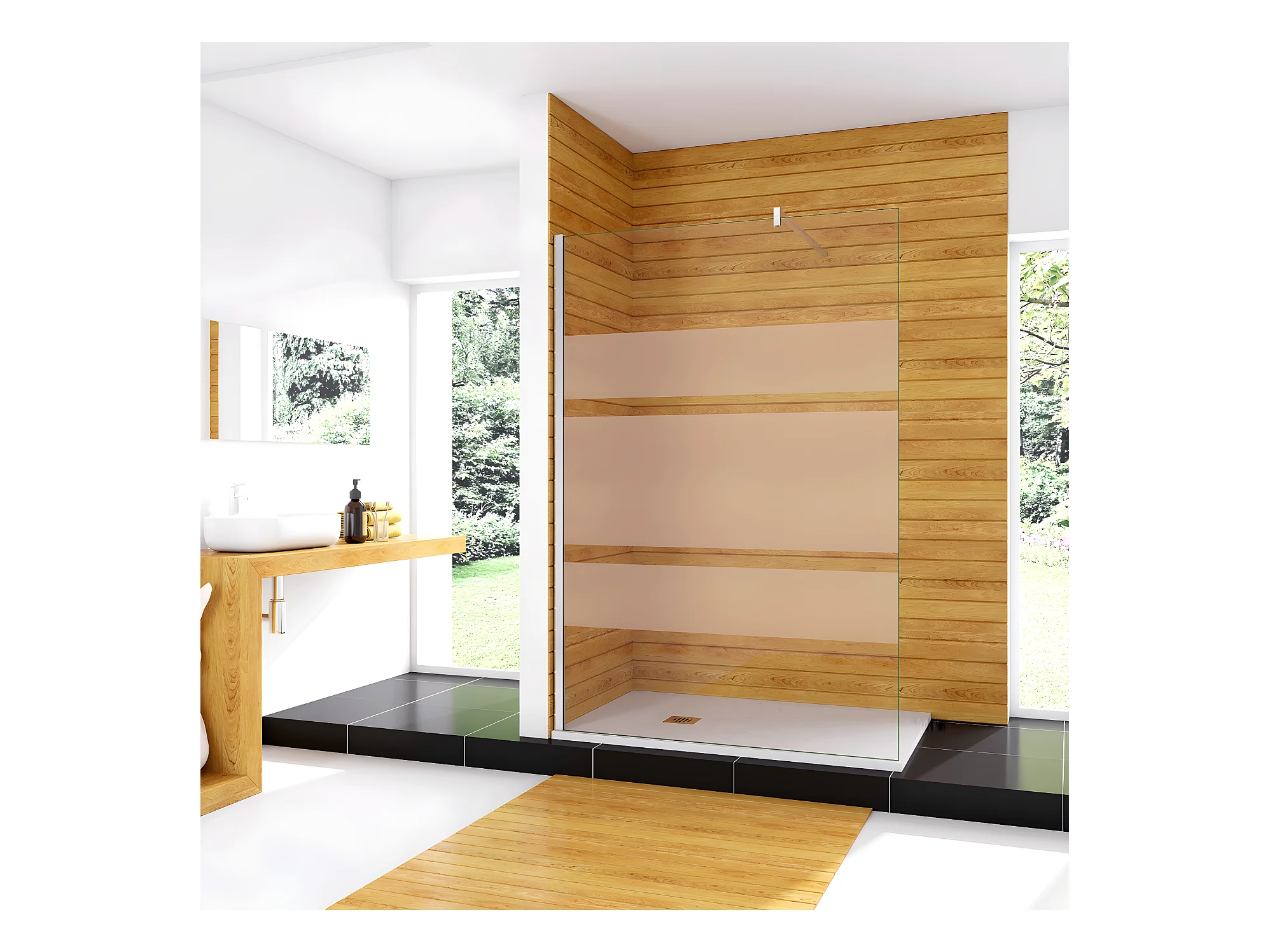 Box Doccia Walk In 70x190cm Parete Fissa in Vetro Temperato da 6 mm Anticalcare Multi Fasce Satinate Opache Telaio Cromo Lucido