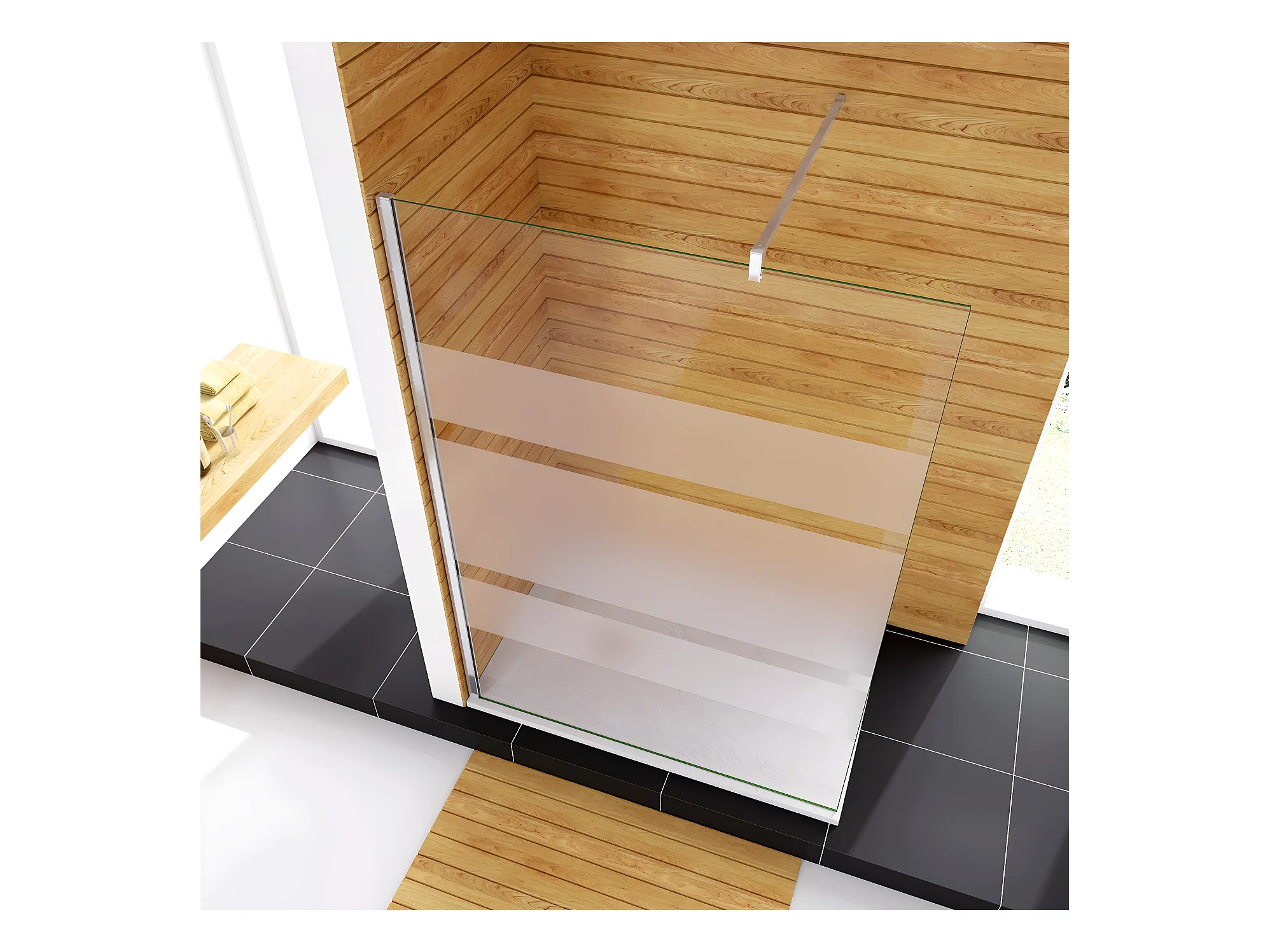 Box Doccia Walk In 70x190cm Parete Fissa in Vetro Temperato 6mm Anticalcare Multi Fasce Satinate Opache con Barra Stabilizzatrice 90cm Cromo Lucido