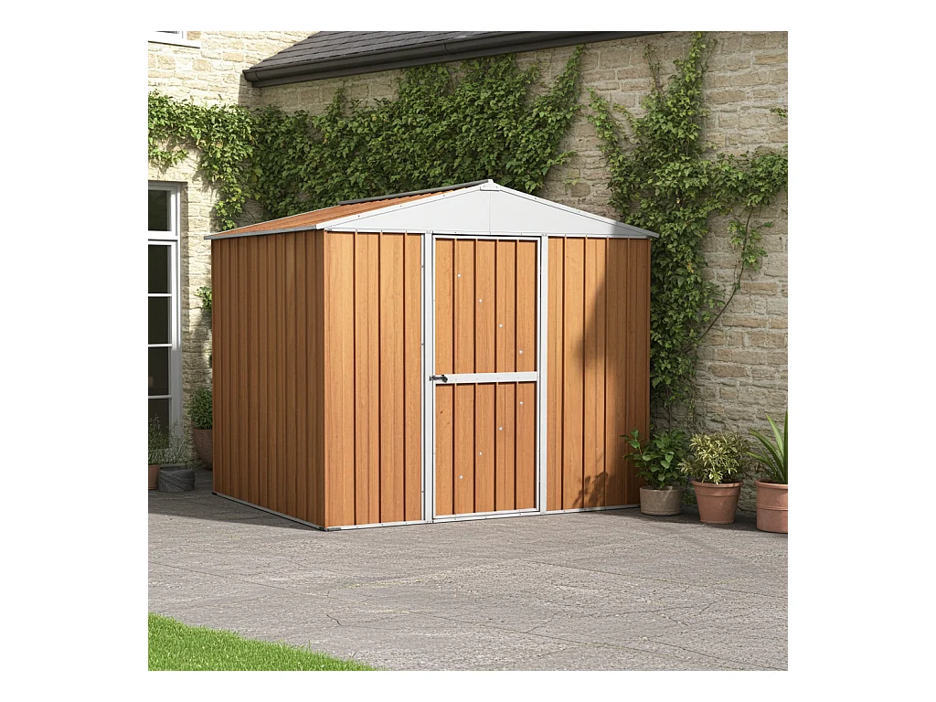 Casetta giardino in lamiera Box in Acciaio Zincato 260x185cm x h1.92m - 85kg - 4,81mq - FINITURA LEGNO