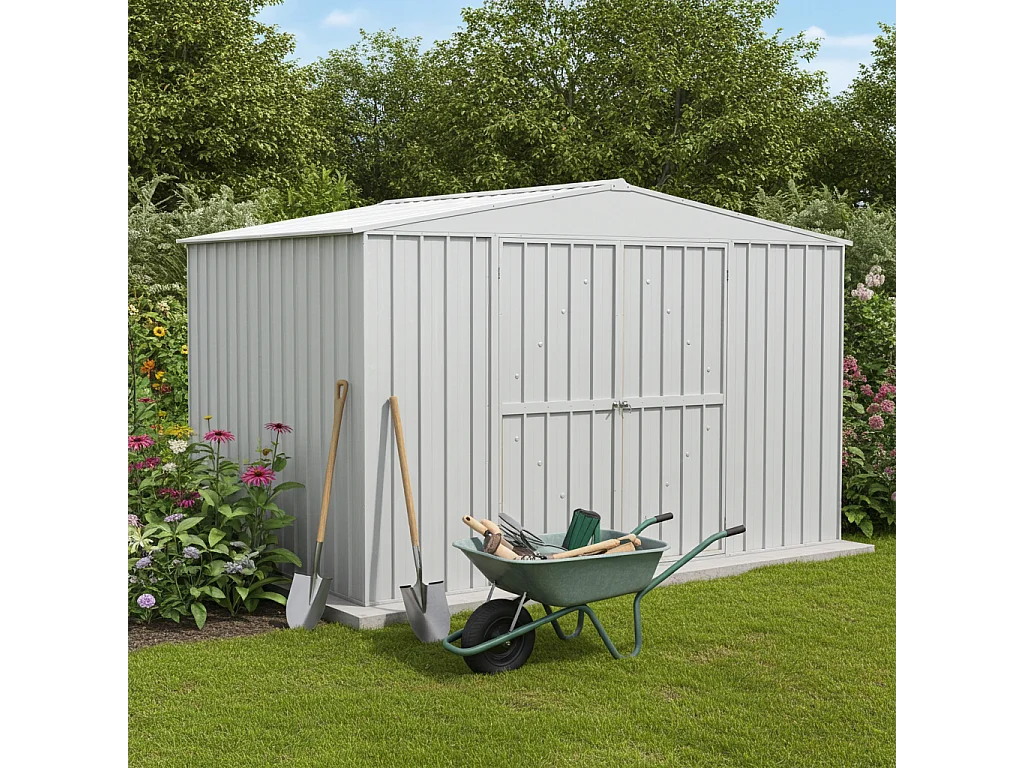 Box in Acciaio Zincato garage attrezzi lamiera 360x3.45cm x h2.12m - 150KG - 12,42mq - BIANCO
