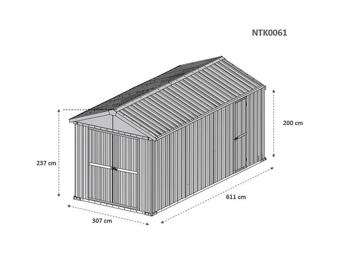 Box in lamiera garage auto Acciaio Zincato 327x611cm x h2.35m - 346KG - 19,98mq - VERDE