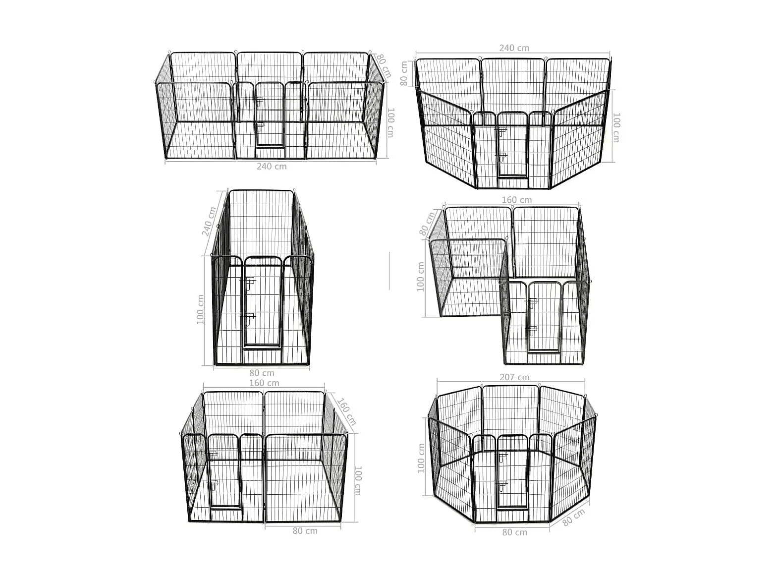 Box modulare per cuccioli, in robusto acciaio, grigio, con 2 porte (80x80x1,5 cm)