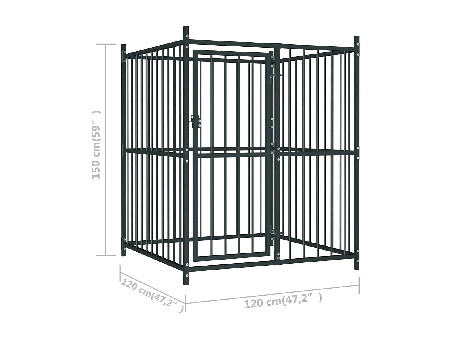 Cuccia da esterno gabbia recinto per animali box per cani da esterno per cani 120 x 120 x 150 cm nero 02_0000461