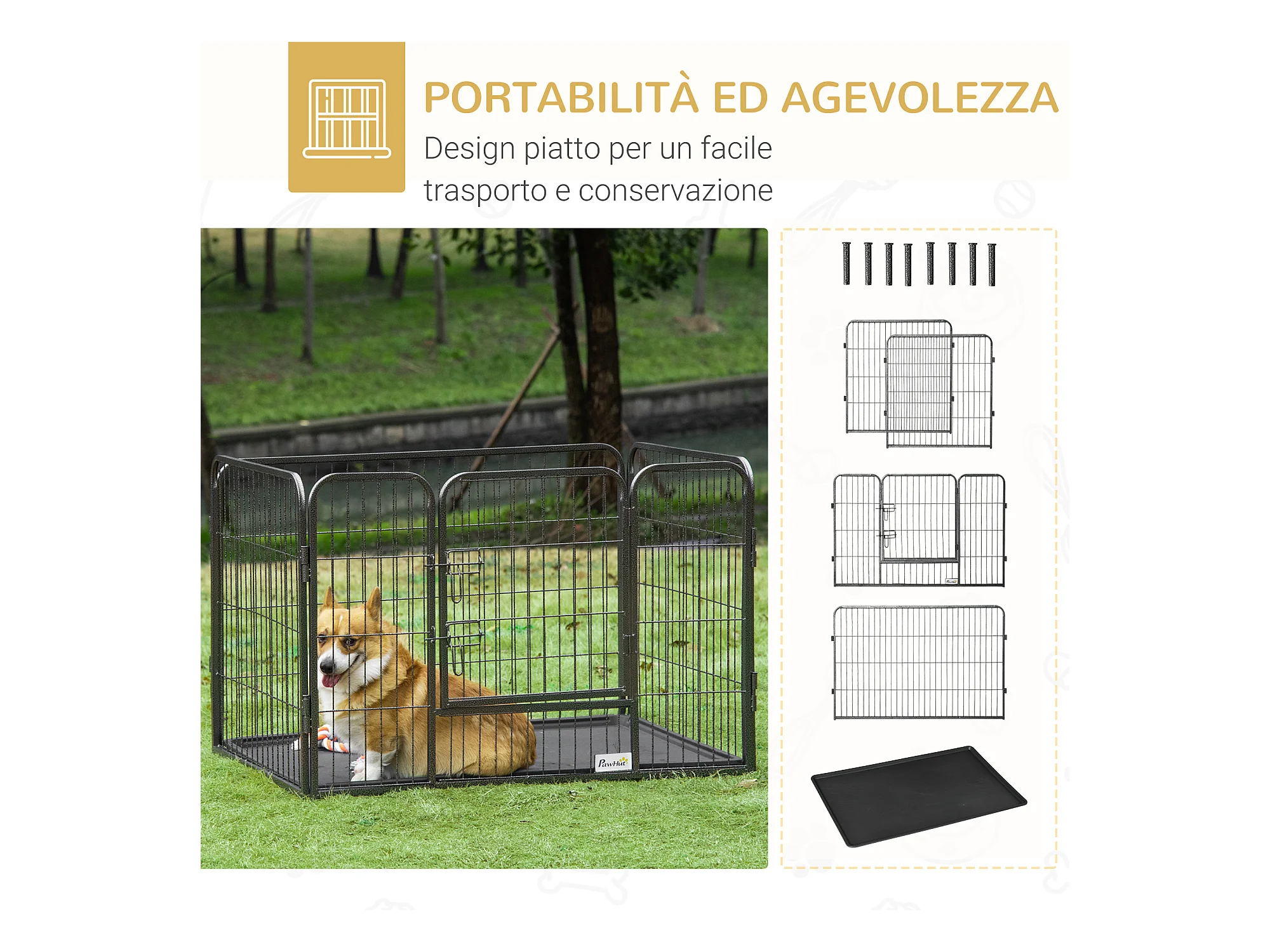 Recinto per cani a 6 pannelli pieghevole con porta alto 80cm grigio scuro