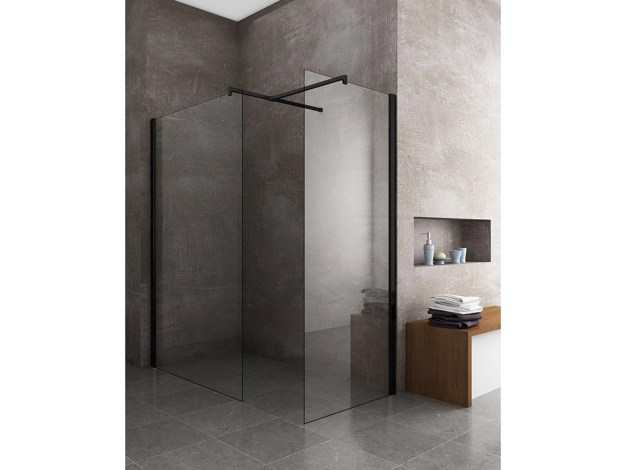 Box Per Doccia Angolare tipo walk-in h 200 8MM Con Vetri Trasparenti Telaio Nero Opaco - 90X120 REVERSIBILE