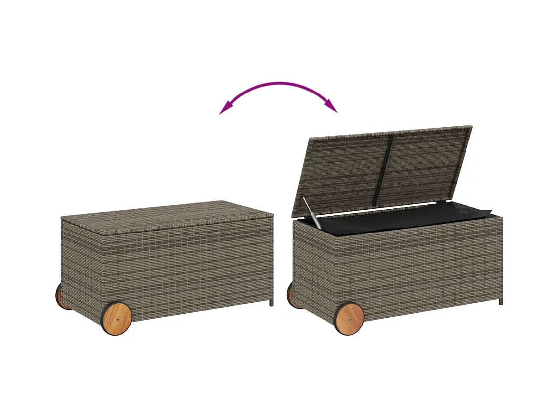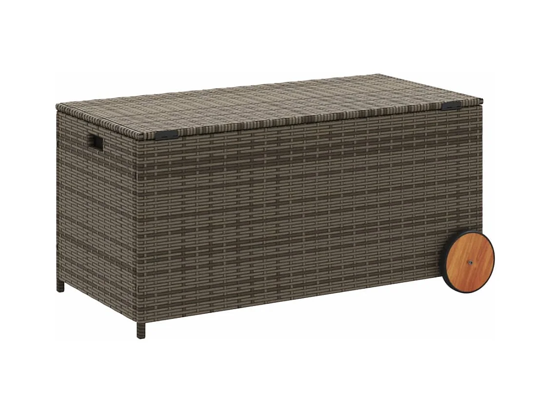 Box portaoggetti da giardino e ruote grigie 283L in resina intrecciata