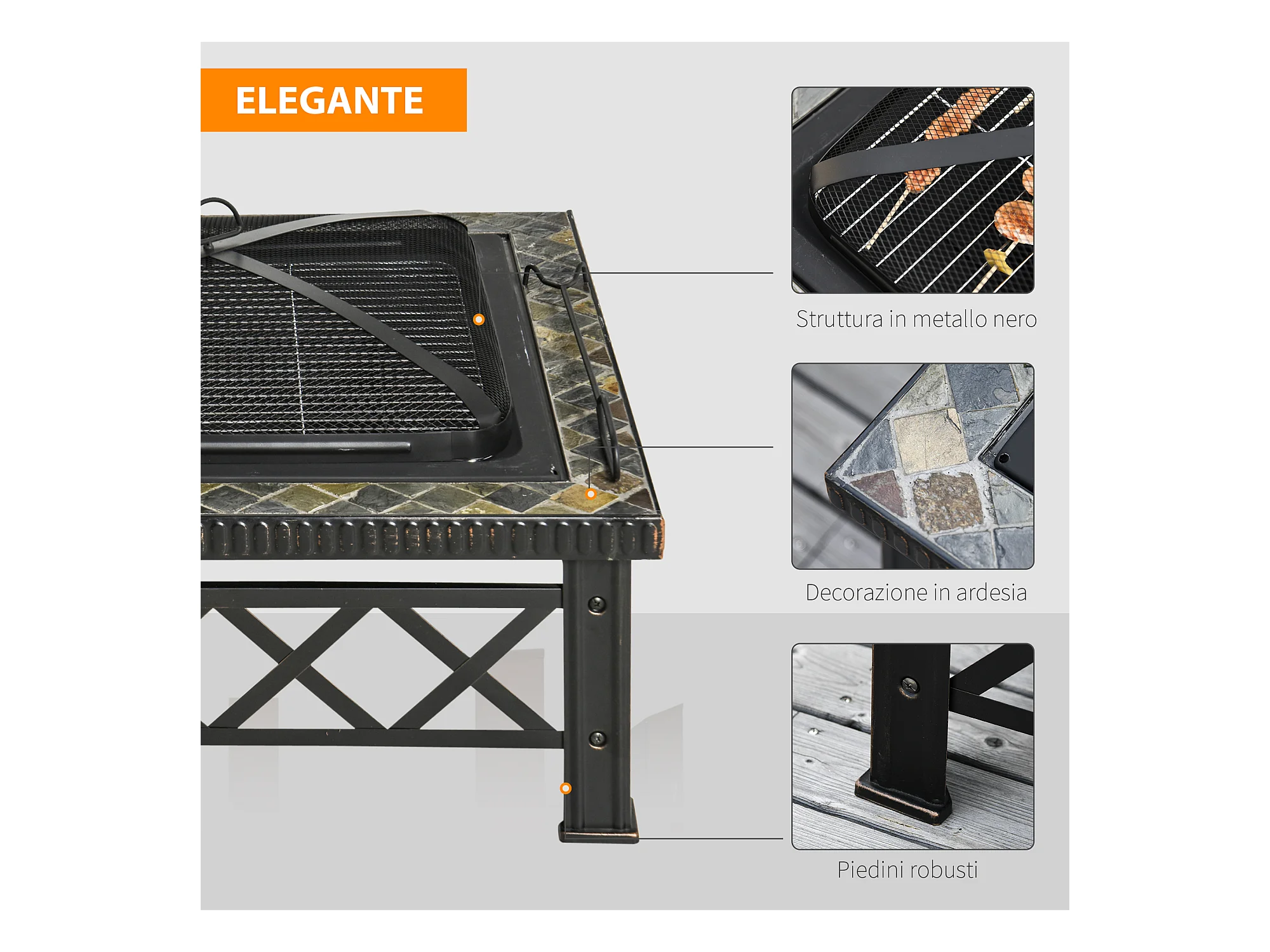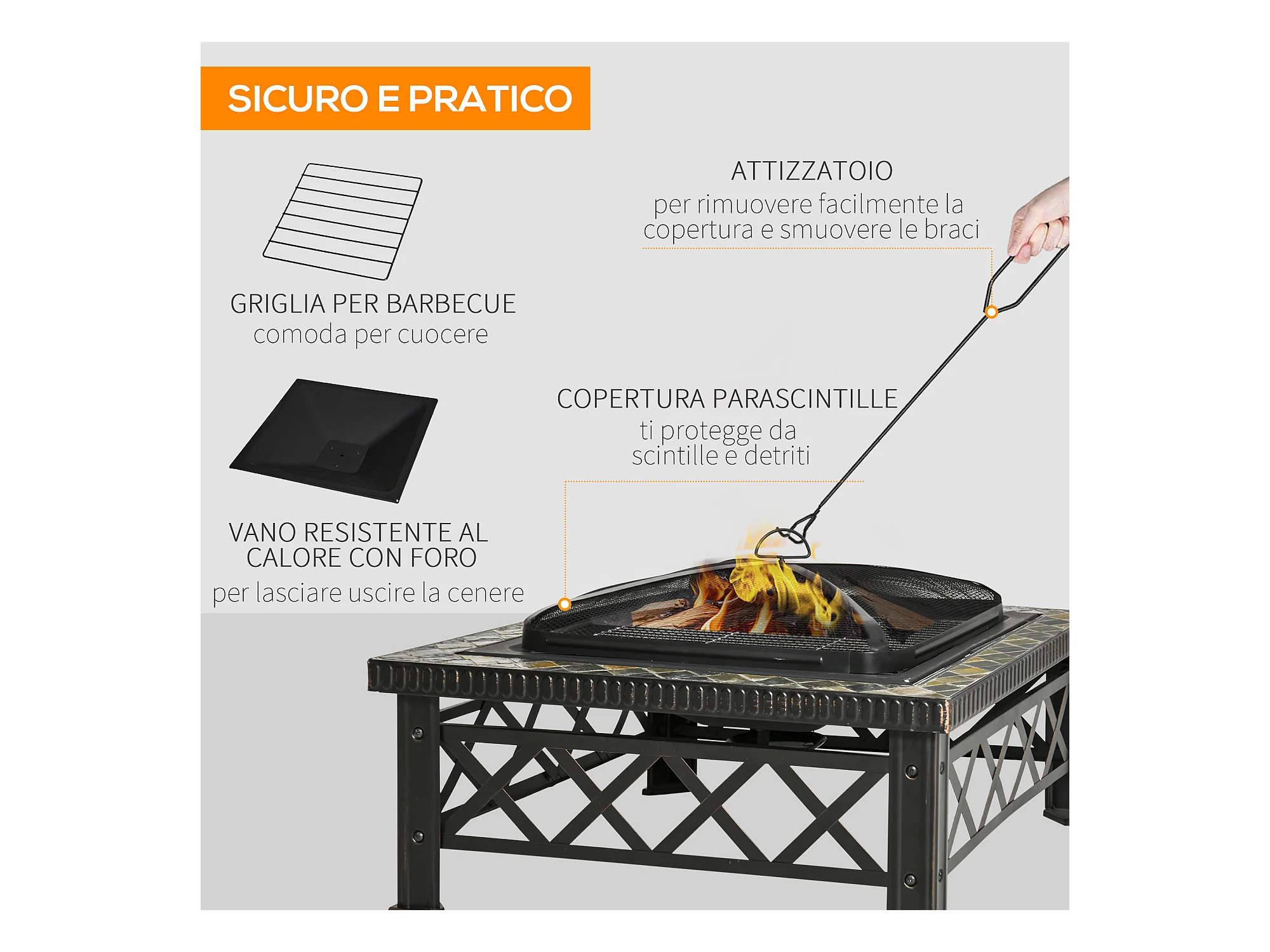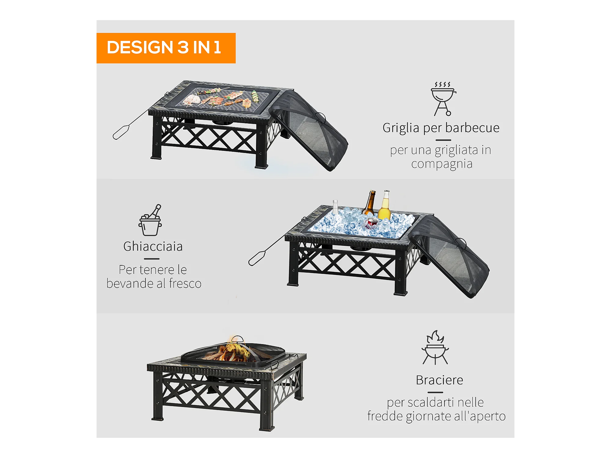 Braciere da giardino con coperchio parascintille griglia metallo nero