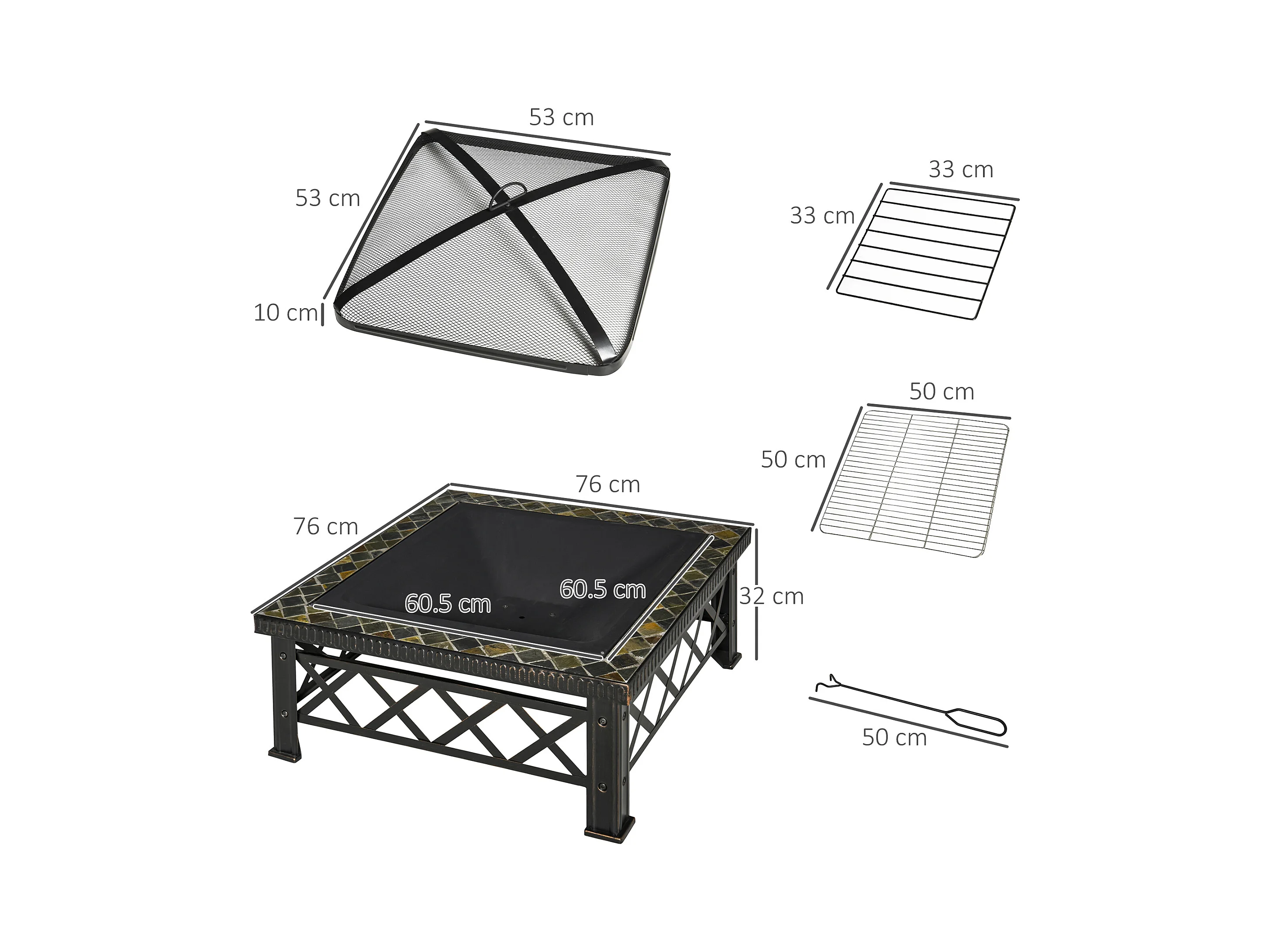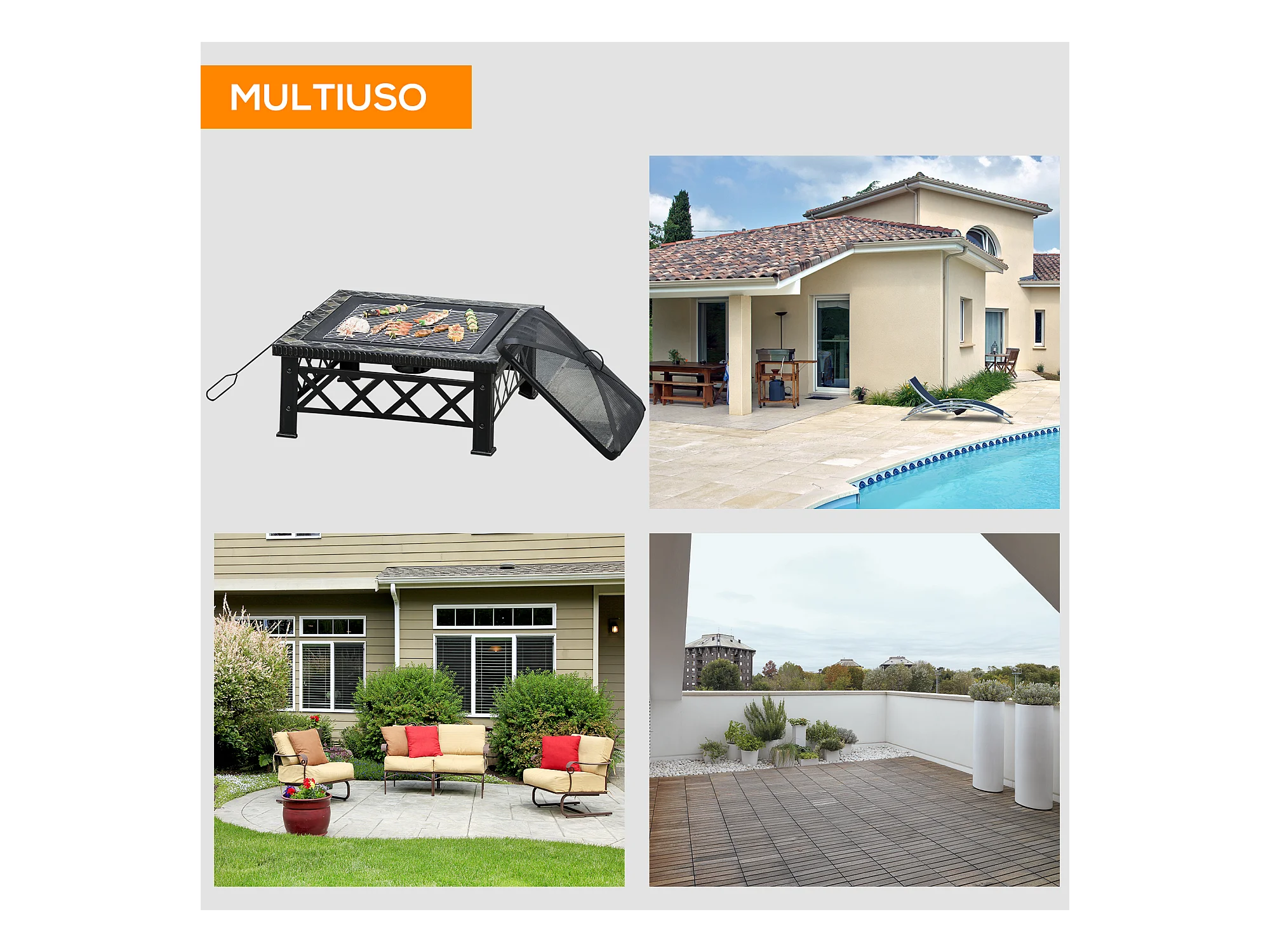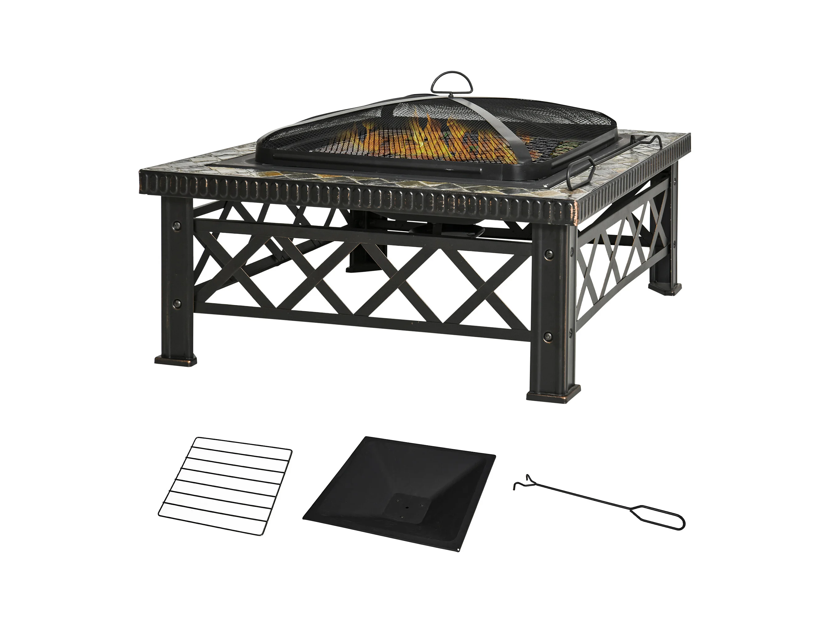 Braciere da giardino con coperchio parascintille griglia metallo nero