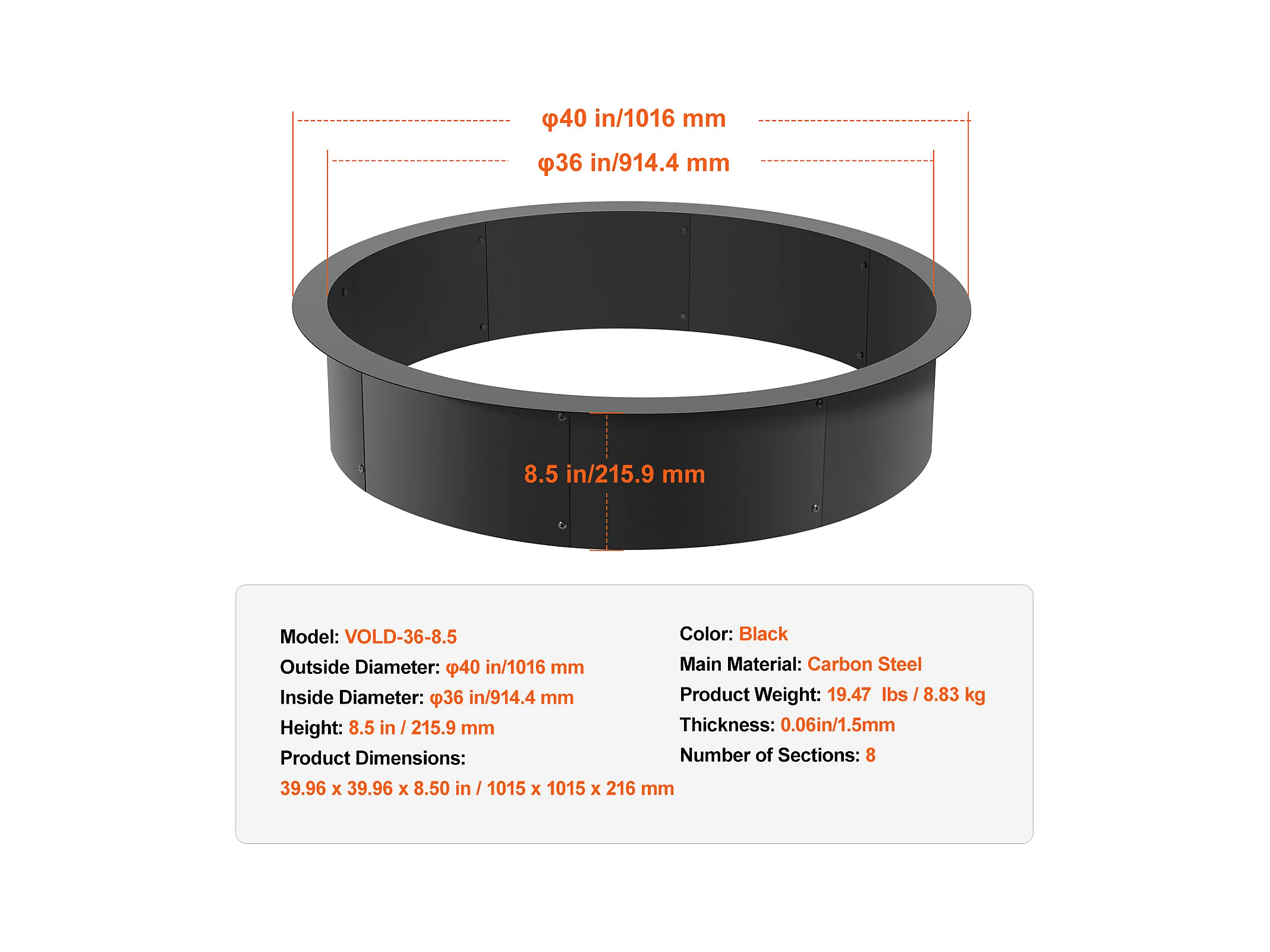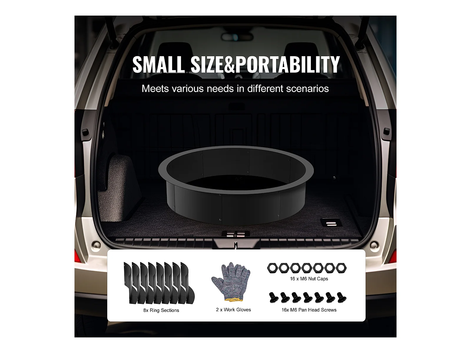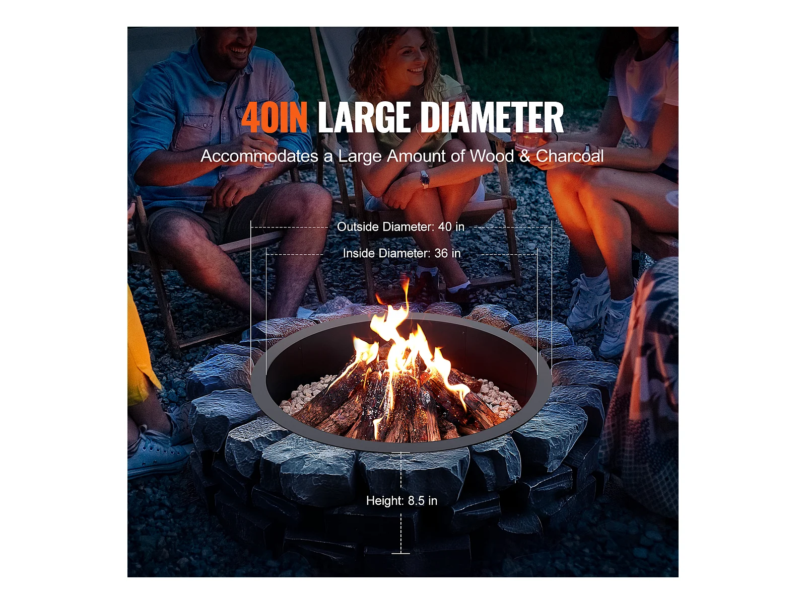 Braciere SucceBuy Anello di Focolare Rotondo in Acciaio, Diametro Esterno 1016 mm, Interno 914,4 mm, per Campeggio all'Aperto