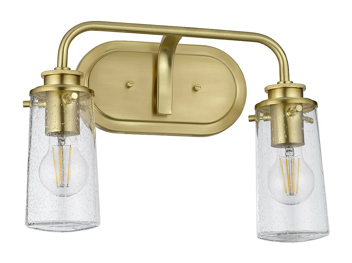 Searchlight Gemma Lampada da parete a 2 luci in ottone satinato, cristallo trasparente